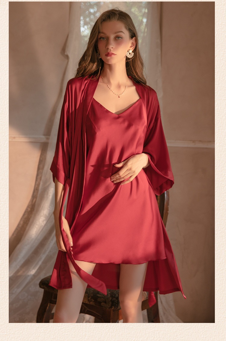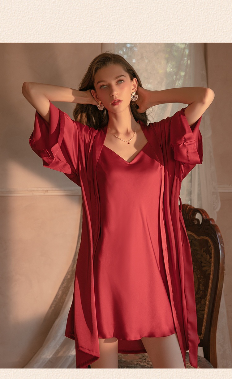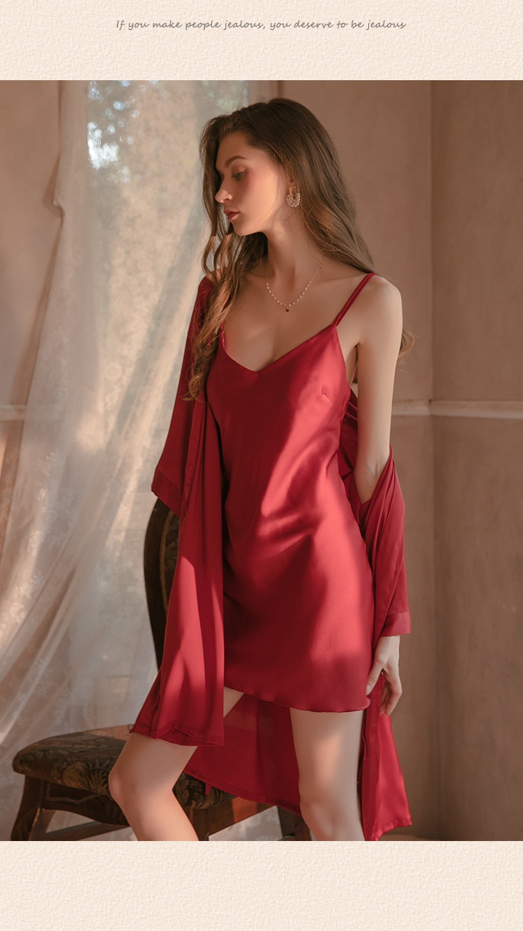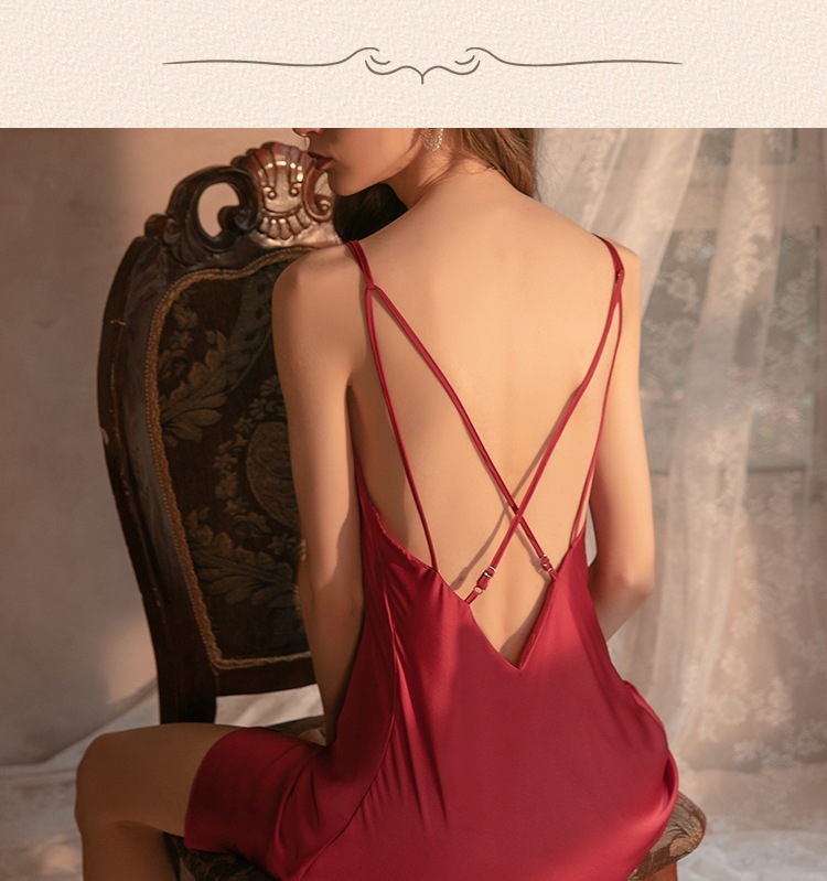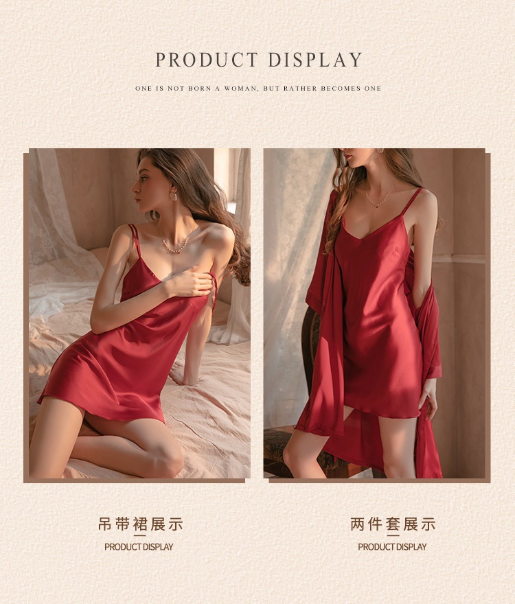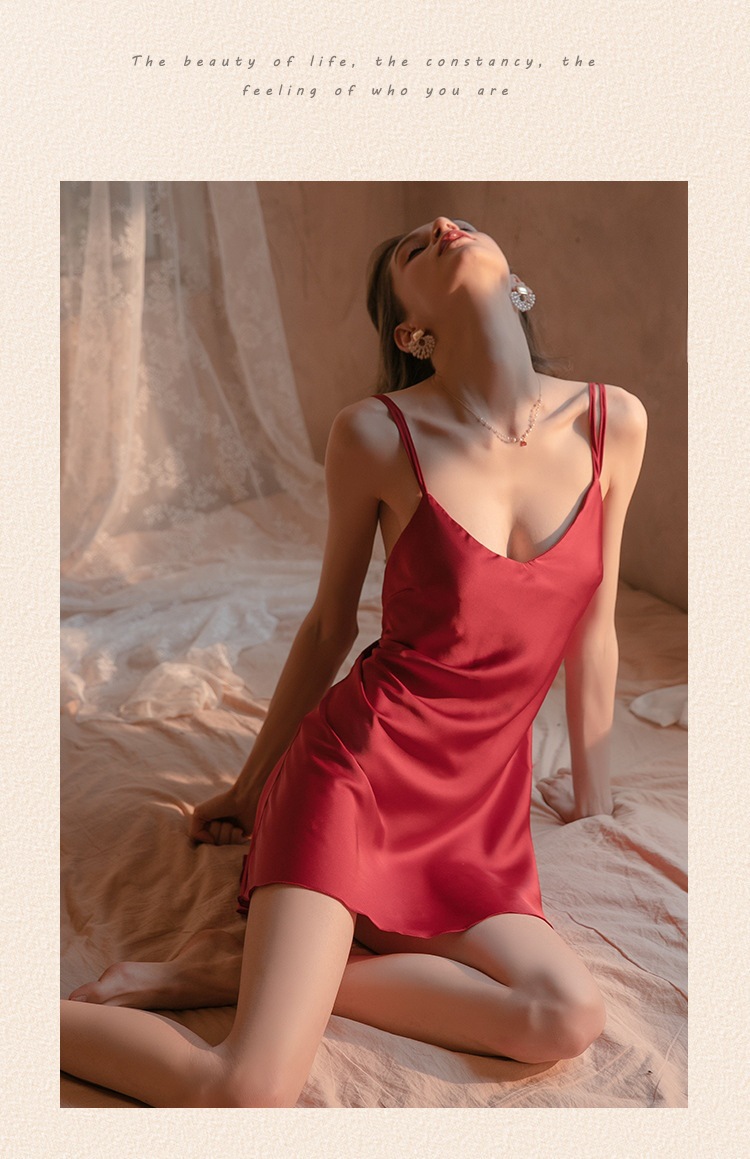 섹시한 잠옷 여성용 여름 아이스 실크 얇은 잠옷 가슴 패드 아름다운 등 2 종 세트 슬링 잠옷 2 종 세트스토어 가기