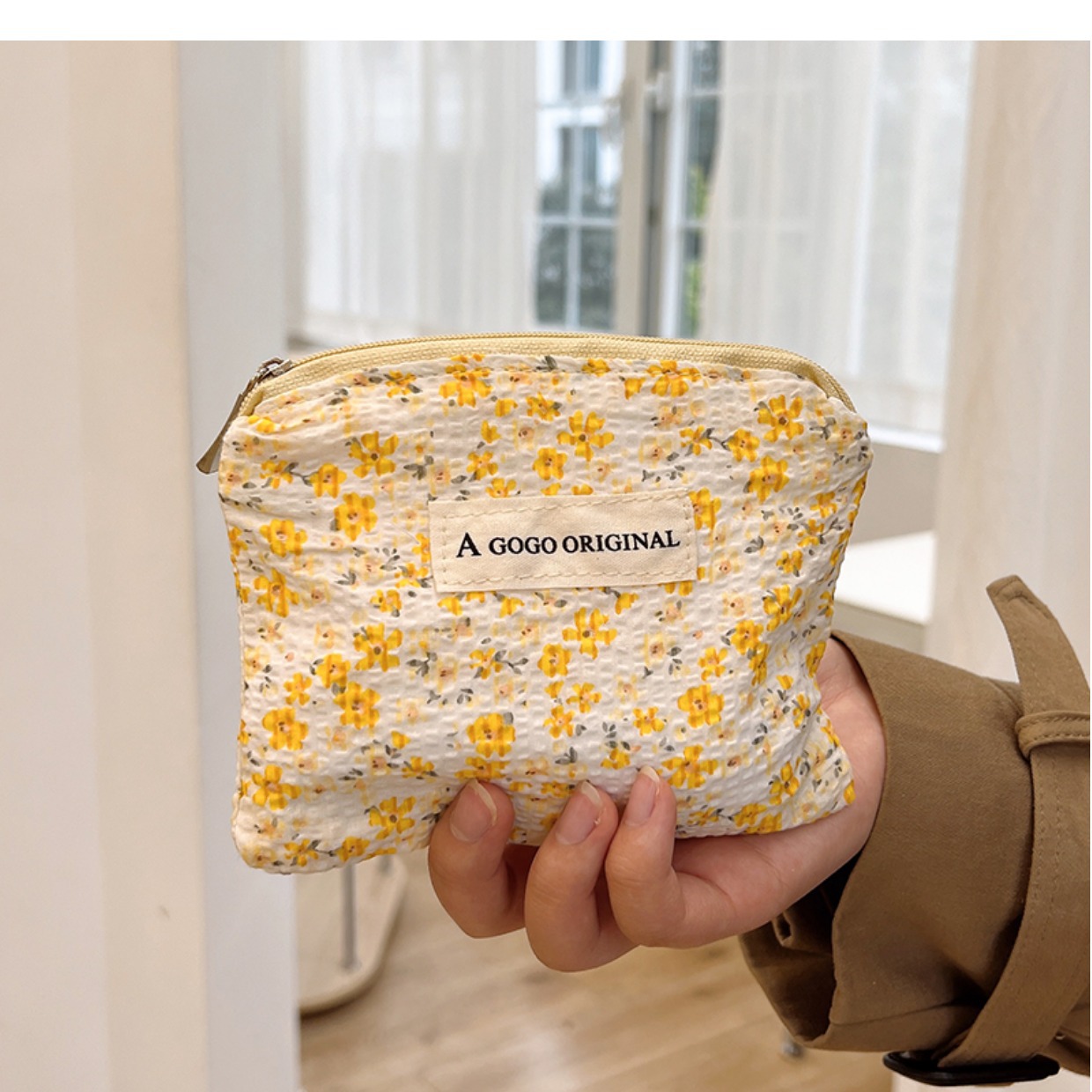• 작은 사각형 가방. 작은 노란 꽃