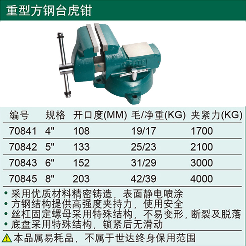 Shida 헤비 듀티 사각 강철 벤치 바이스 플랫 플라이어 바이스 70841 70842 70843-70845