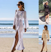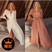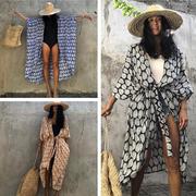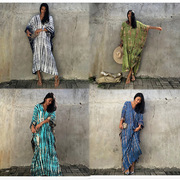 유럽과 미국 크로스 국경 면 위치 인쇄 비치 스커트 휴가 태양 보호 원피스 비키니 수영복 여자의 바깥 블라우스
