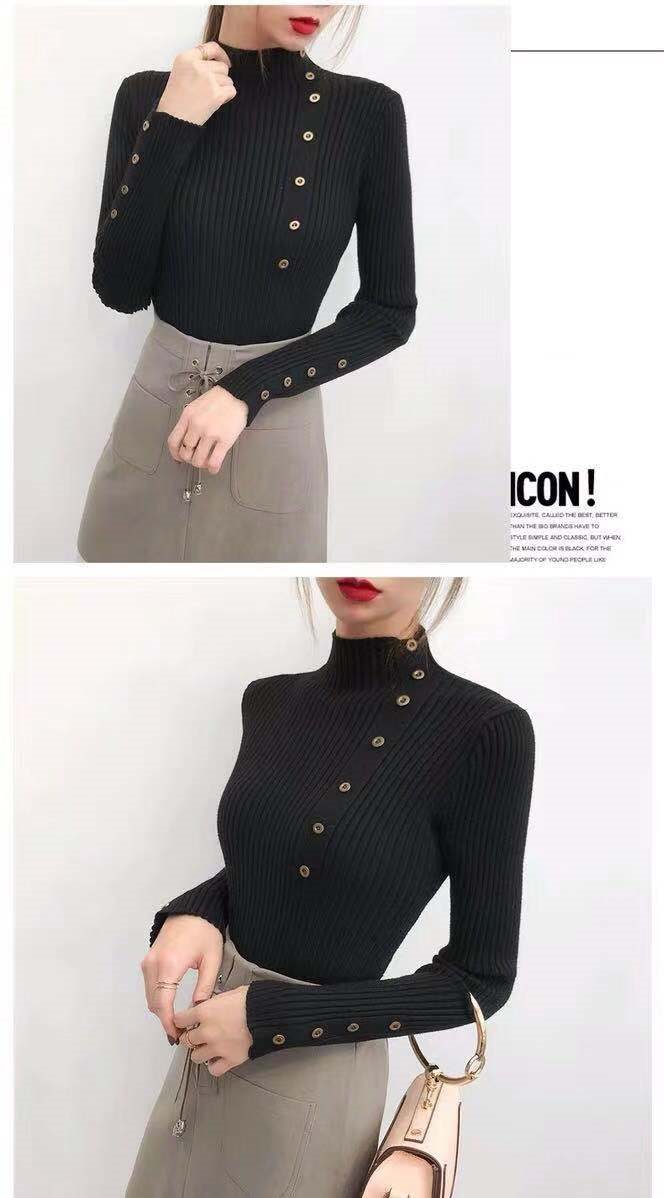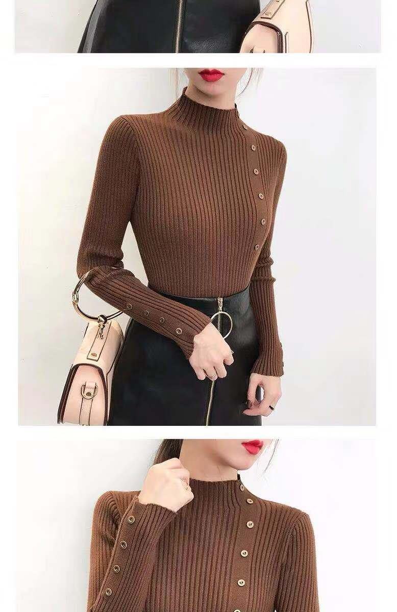 새로운 스타일의 여성용 슬림핏 하프 터틀넥 스웨터, 가을 겨울용 두꺼운 긴팔 니트 풀오버 이너웨어