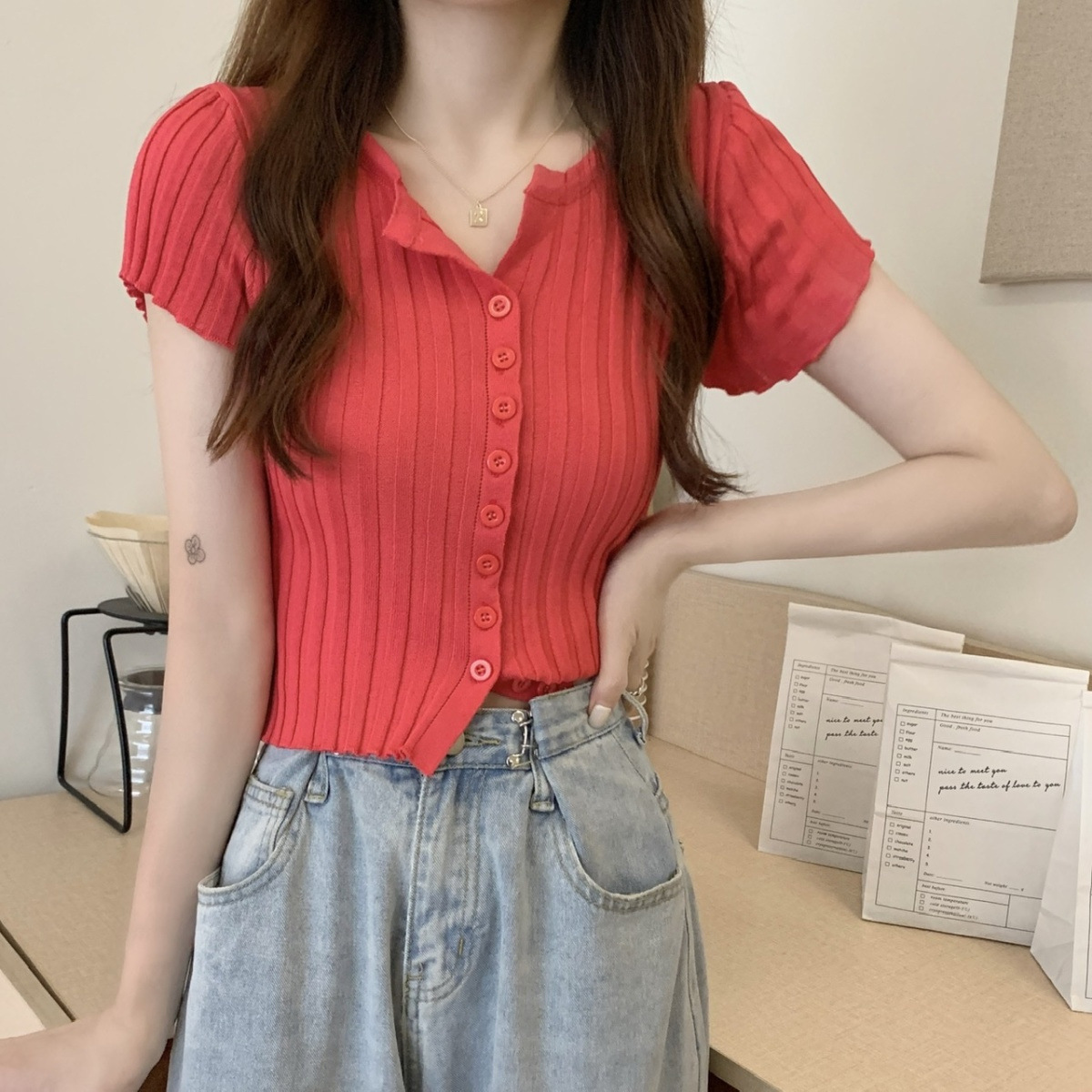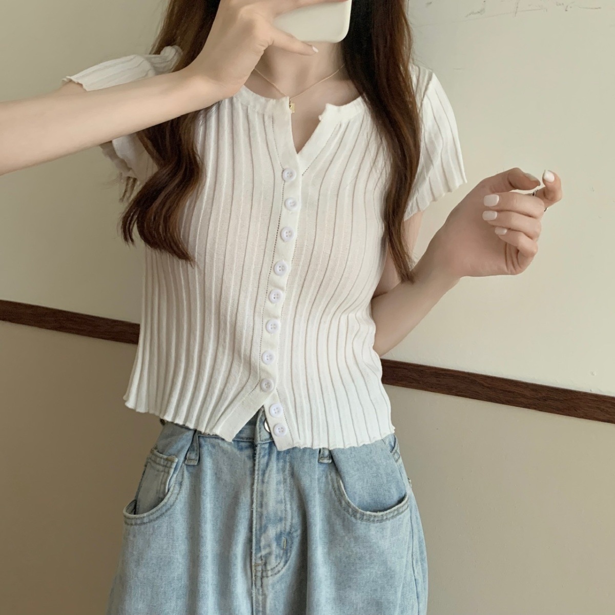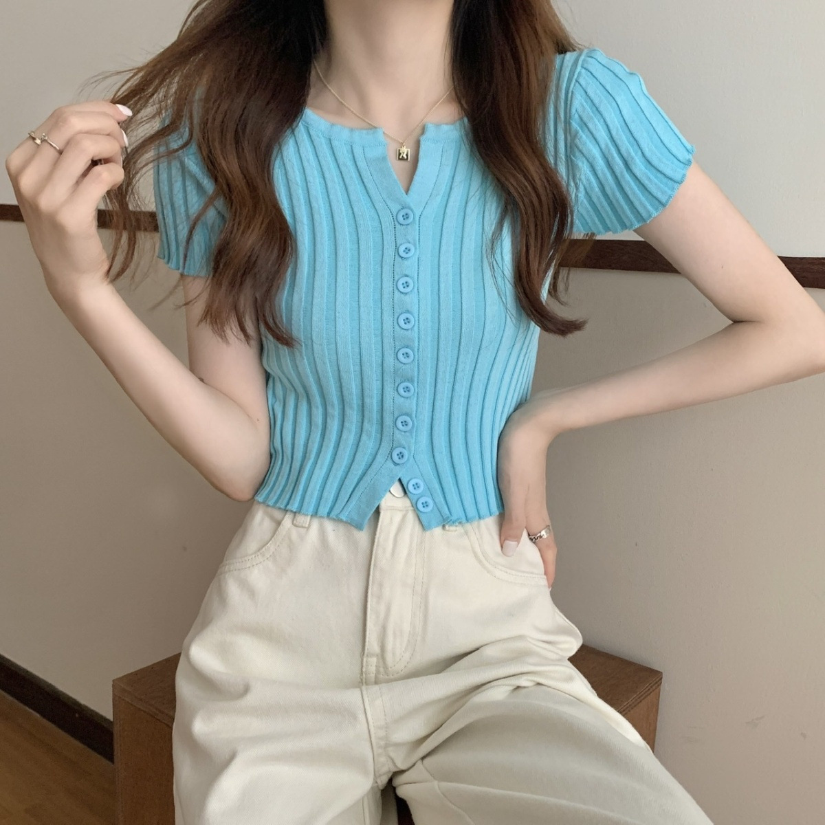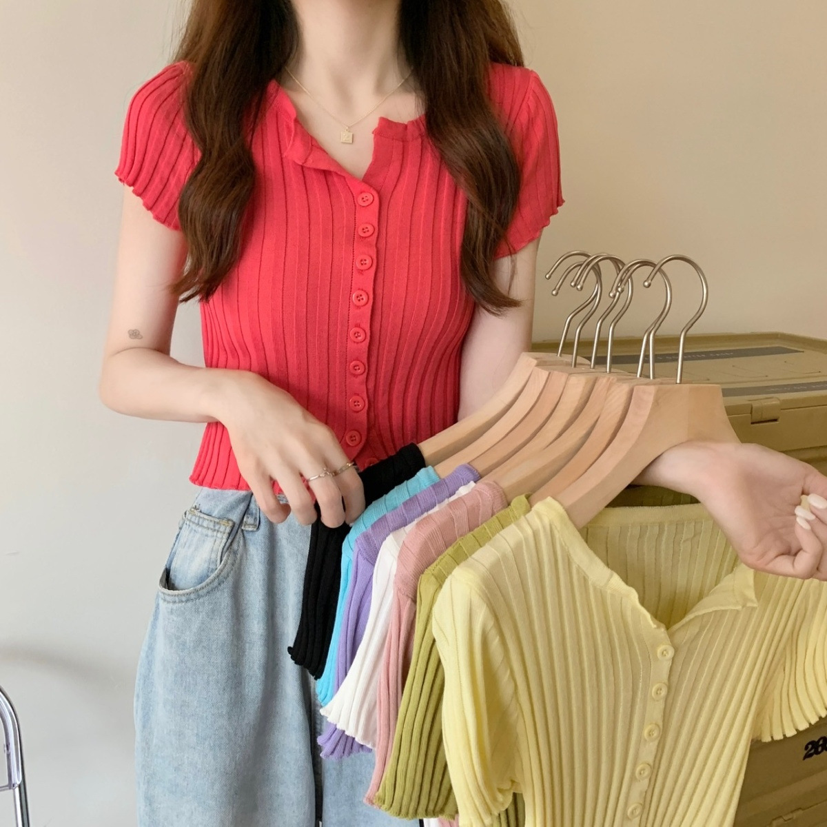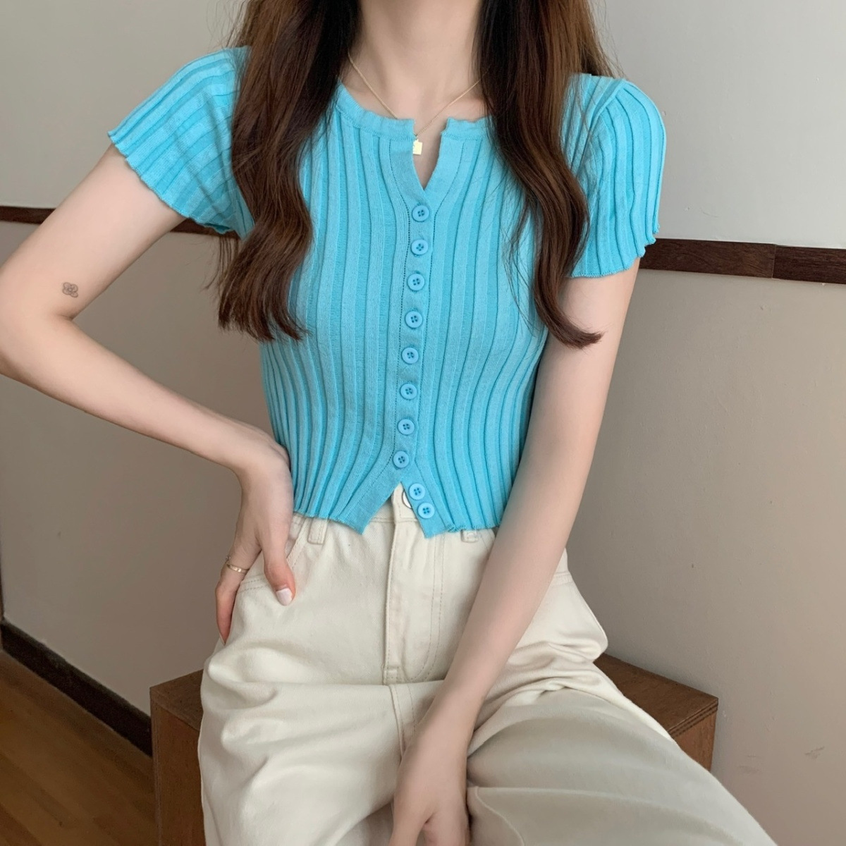 블랙 크롭 하이웨이스트 니트 반팔 티셔츠 여성용 핫걸 타이트핏 숏탑 여름 얇은 스타일 2026 신상스토어 가기
