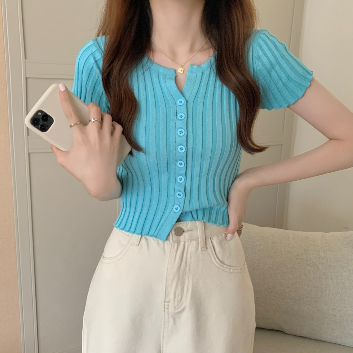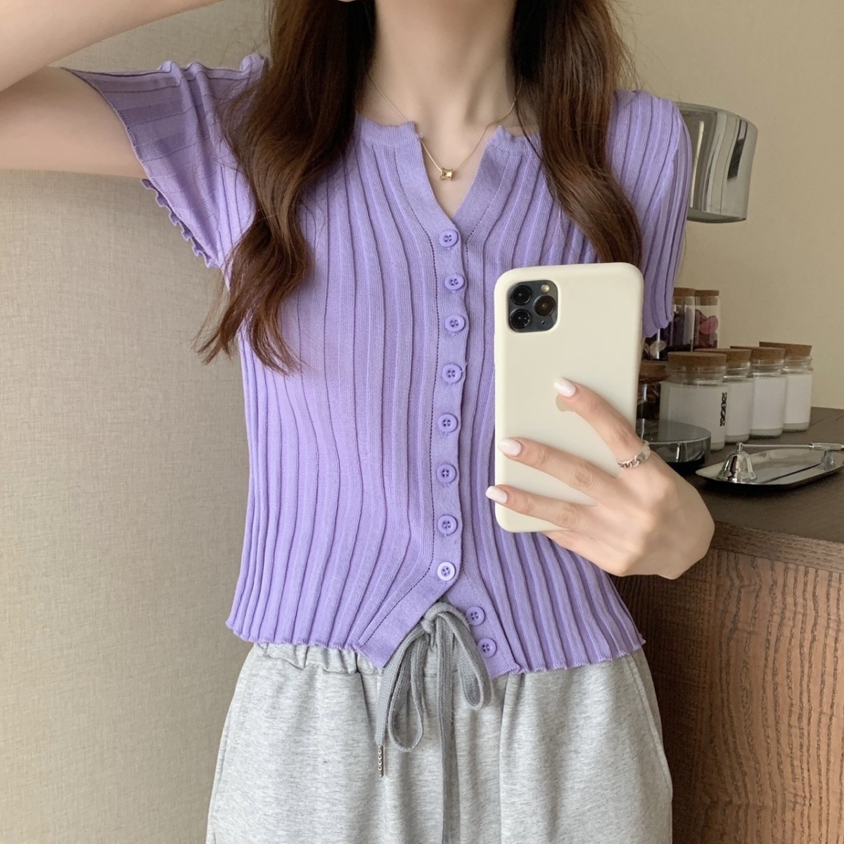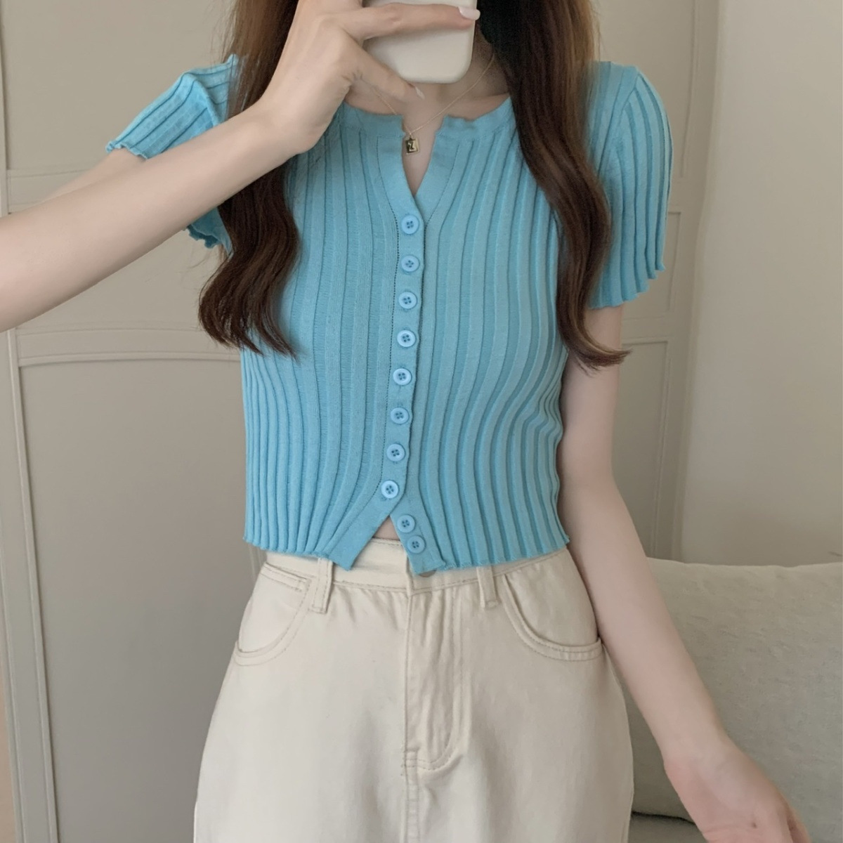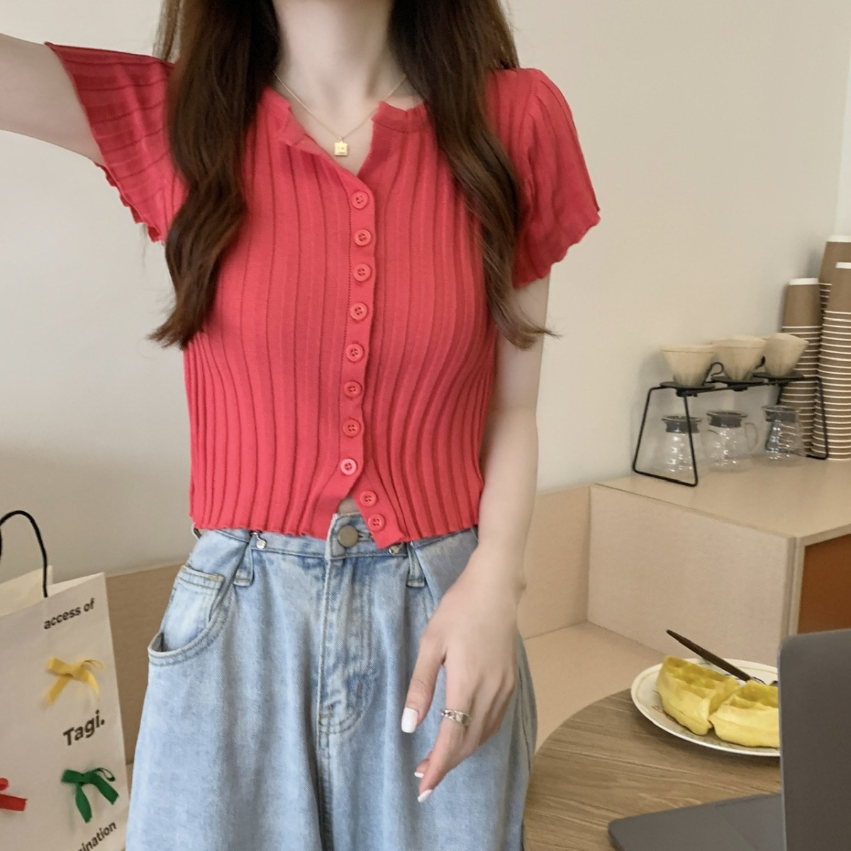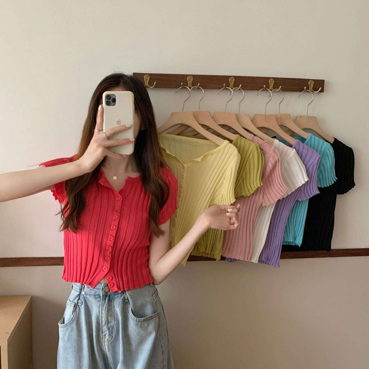 블랙 크롭 하이웨이스트 니트 반팔 티셔츠 여성용 핫걸 타이트핏 숏탑 여름 얇은 스타일 2026 신상스토어 가기