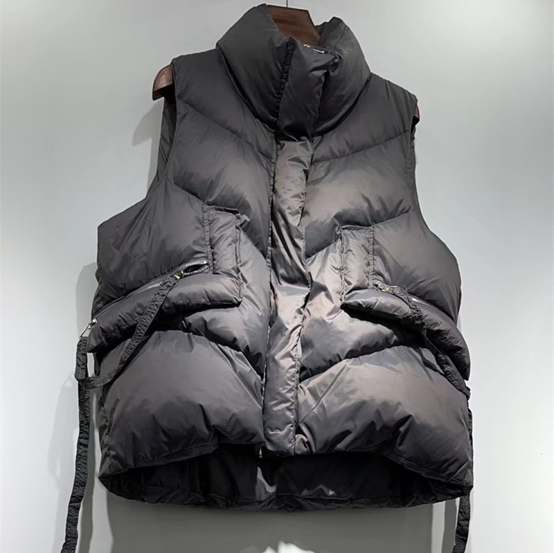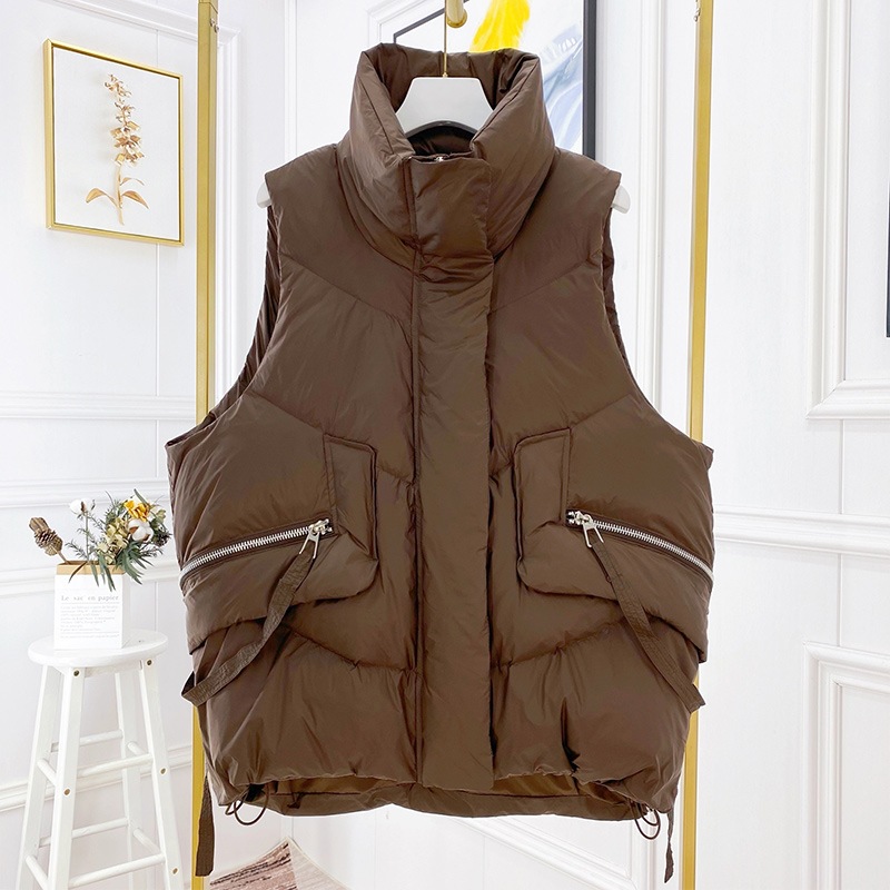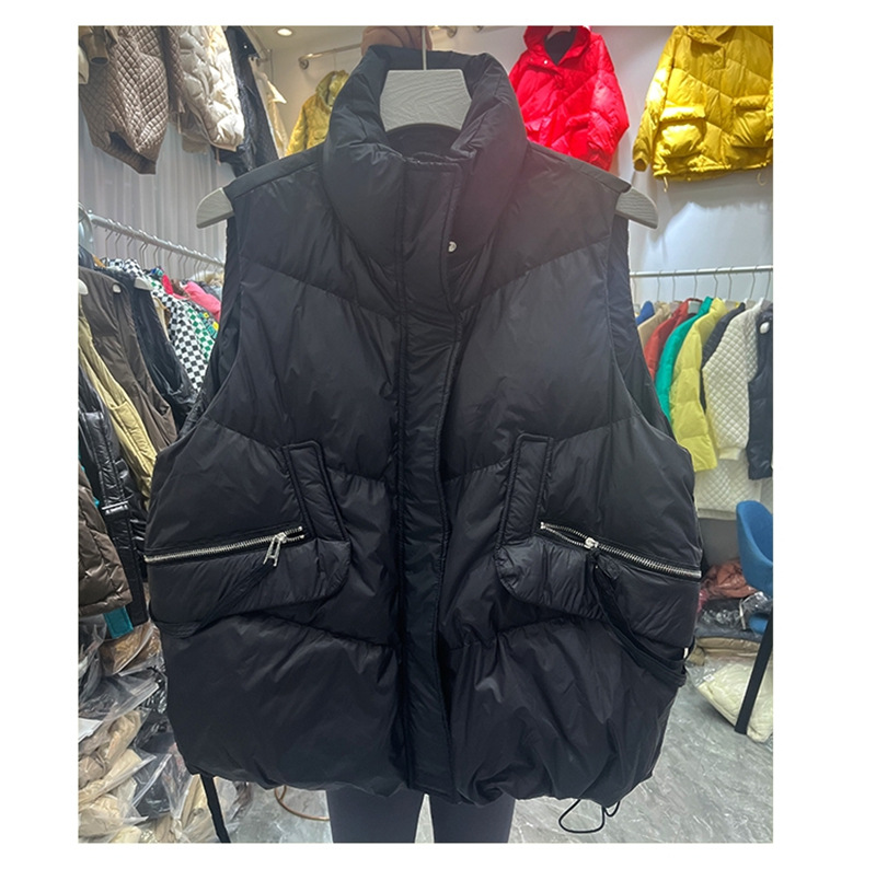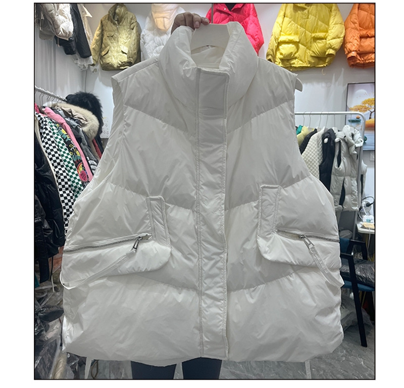 유럽풍 가을 겨울 여성용 숏 다운 조끼, 화이트 덕다운 조끼, 스타일리시한 아우터스토어 가기