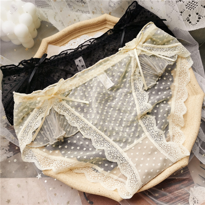 455 속눈썹 곡선 # 일본 달콤한 스타일 주름 섹시한 귀여운 메쉬 낮은 허리 여성 속옷