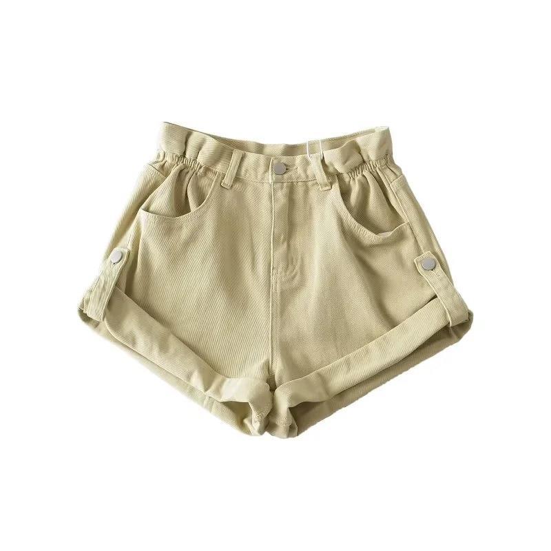 糖果色高腰卷边辣妹三分短裤 公仪服饰