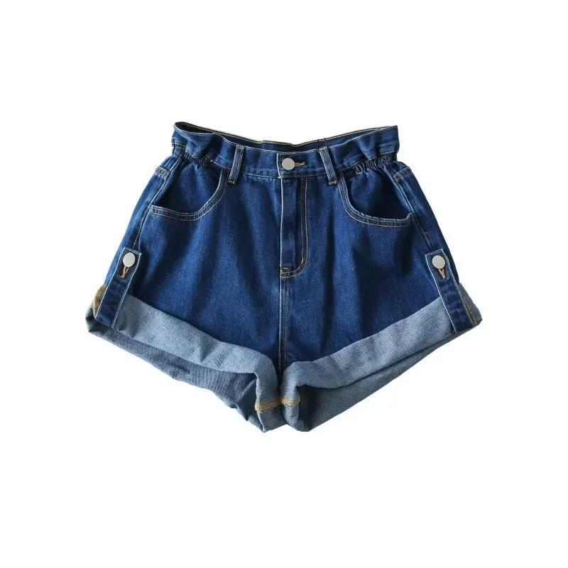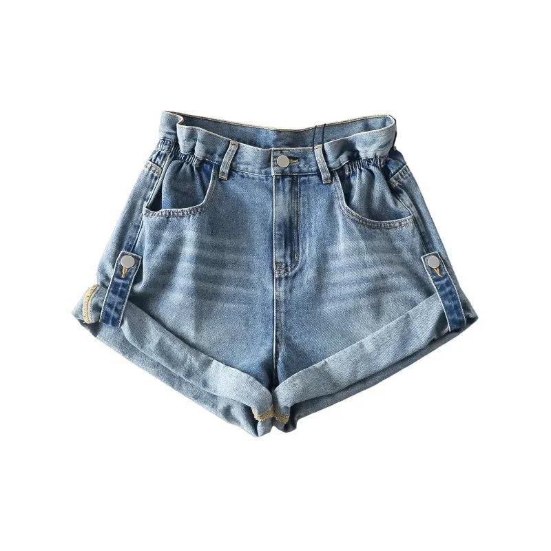 캔디 컬러 하이 웨이스트 컬링 핫 걸 3 점 반바지 여성용 느슨한 슬리밍 와이드 레그 팬츠 유행 캐주얼 청바지스토어 가기