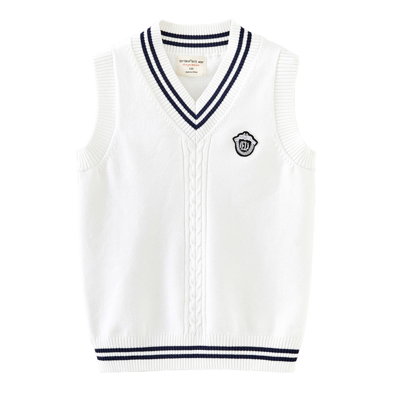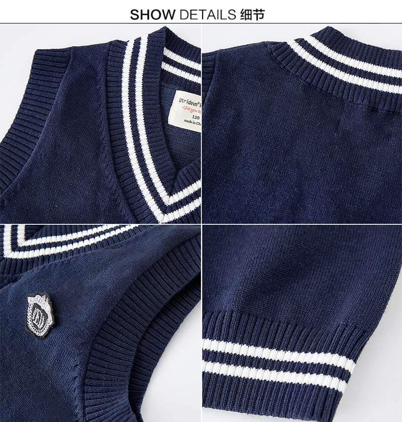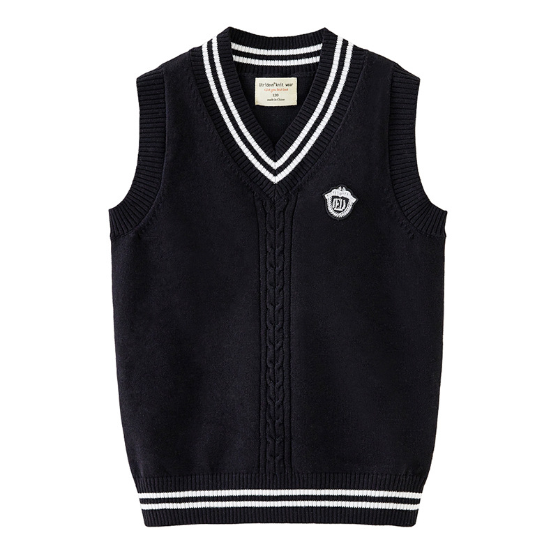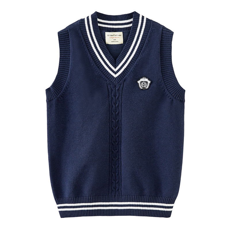 봄과 가을 중학교 아동복 V 칼라 트위스트 스웨터 조끼 초등학생을위한 교복 소년 소녀 니트 조끼스토어 가기