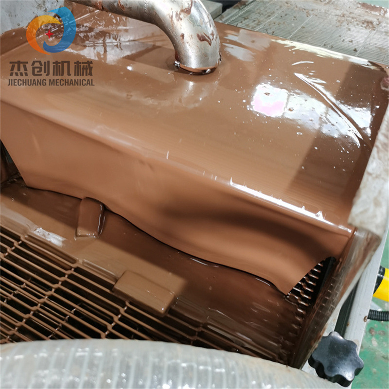 裹巧克力的设备跟平时的淋浆机不同的是带浆液加热,隔水加热避免设备工作的时候巧克力浆液凝固使设备无法工作