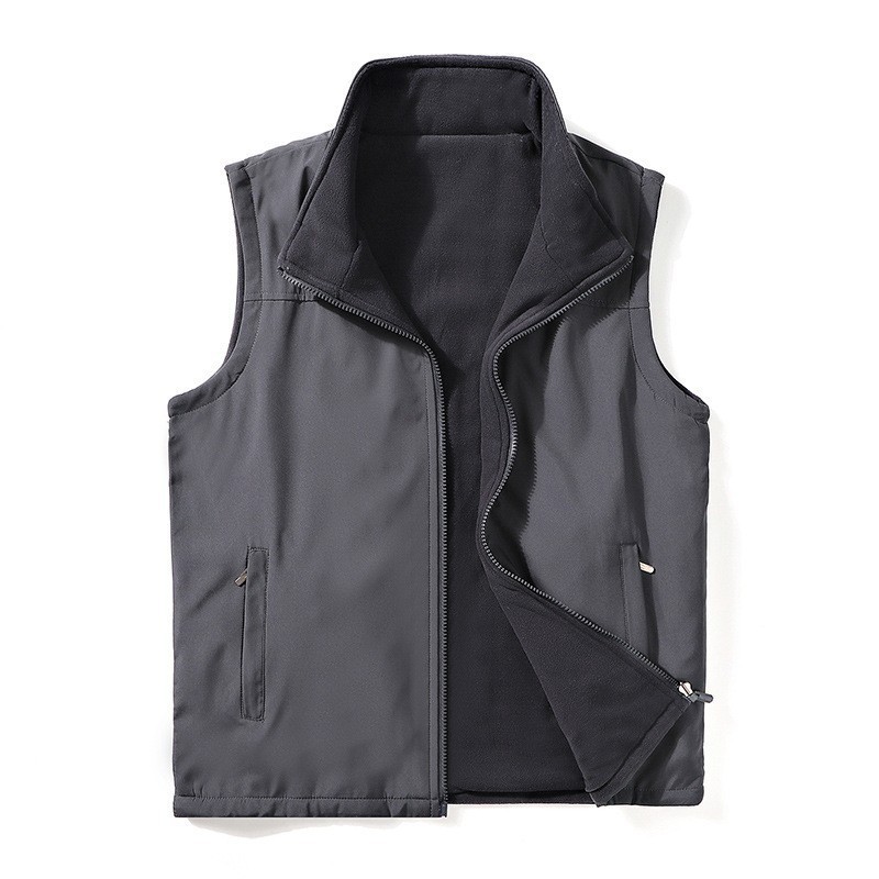 폴라 플리스 양면 조끼 남성 가을과 겨울 야외 레저 스포츠 민소매 조끼 조끼 중년 및 노인 재킷