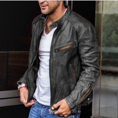 2022년 외국 무역 유럽 및 미국 남성복 남성 가죽 재킷 청소년용 스탠드 칼라 펑크 남성 바이커 재킷 남성용 해외 인기 상품