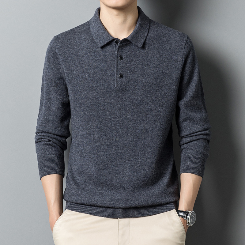 새로운 가을과 겨울 남성 울 스웨터 긴팔 순수 울 스웨터 남성 캐주얼 옷깃 스웨터 머리카락 세대스토어 가기