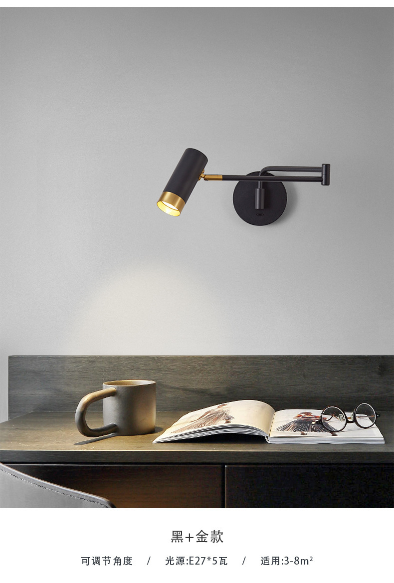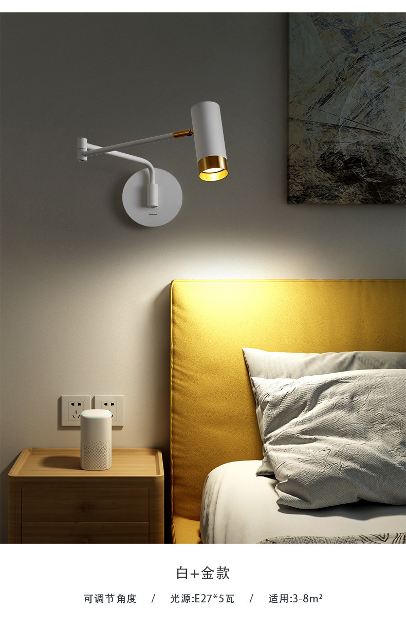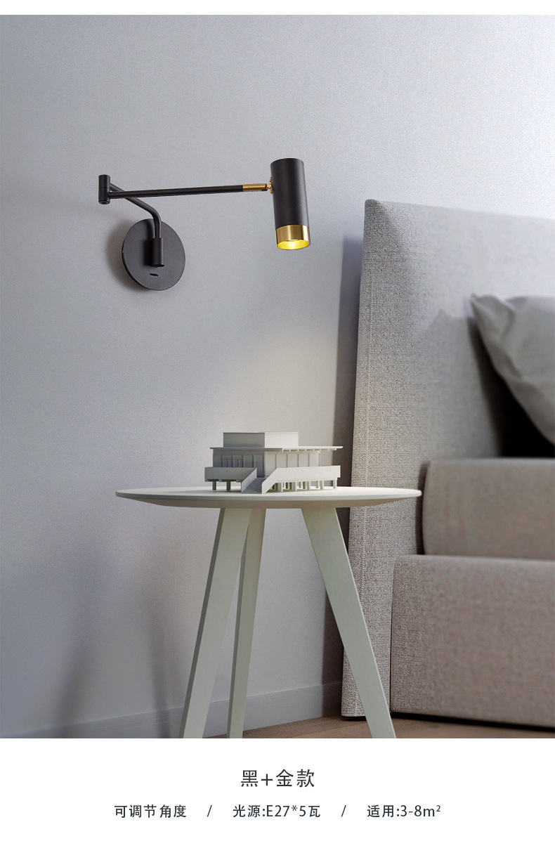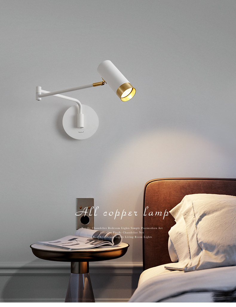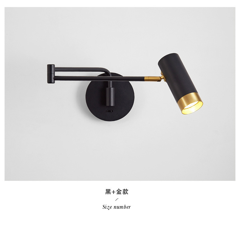 최소한의 침대 옆 벽 램프 조명 럭셔리 간단한 현대 연구 독서 주도 창조적 인 텔레스코픽 로커 침실 벽 램프