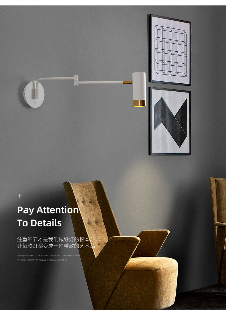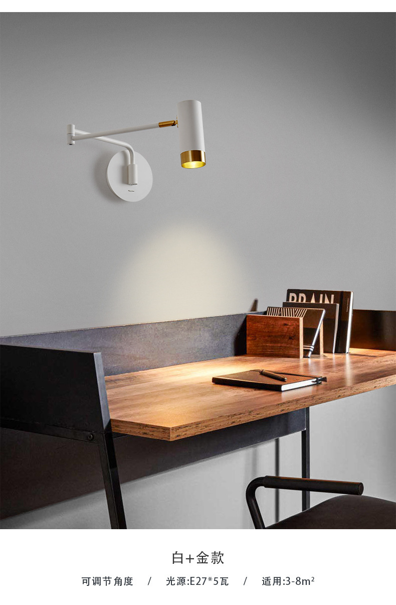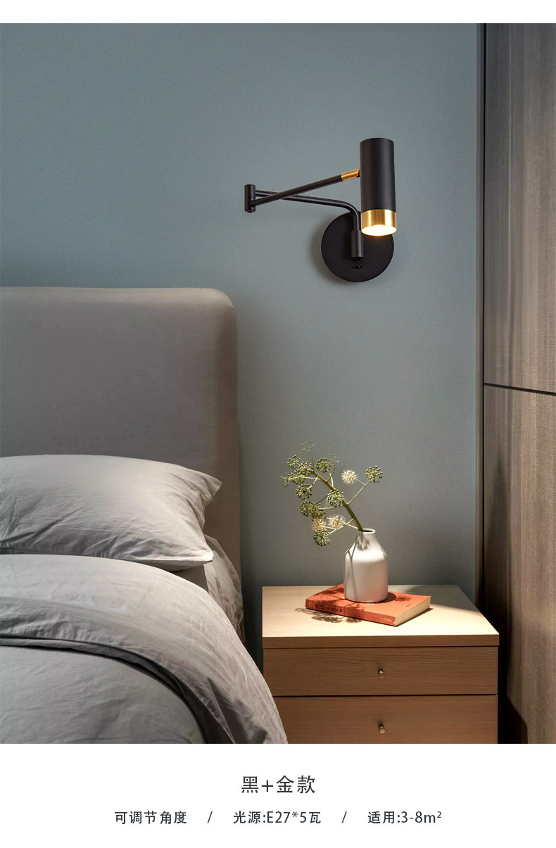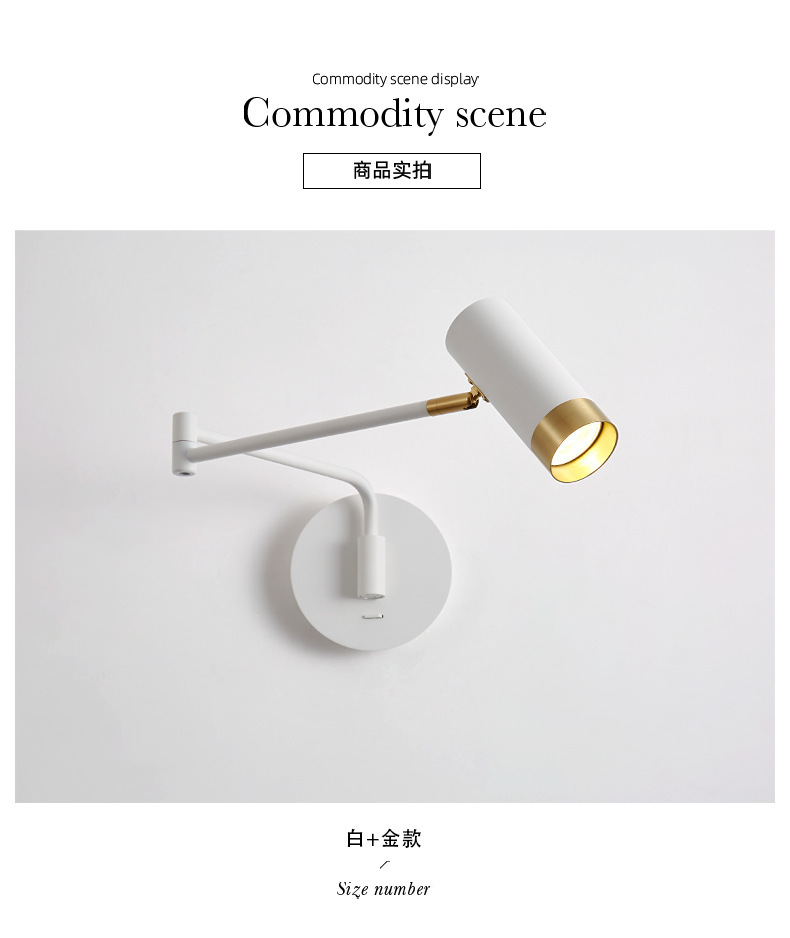 최소한의 침대 옆 벽 램프 조명 럭셔리 간단한 현대 연구 독서 주도 창조적 인 텔레스코픽 로커 침실 벽 램프