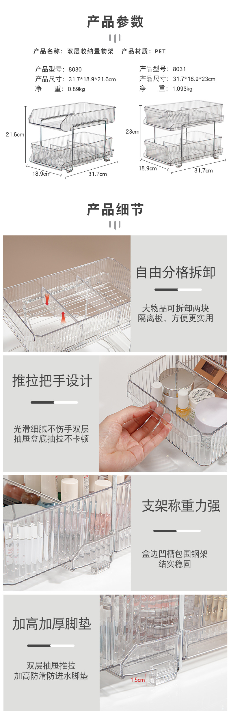 다층 주방 선반 데스크탑 서랍형 보관 상자 화장품 플라스틱 마감 상자 구획 2 층 보관 랙스토어 가기