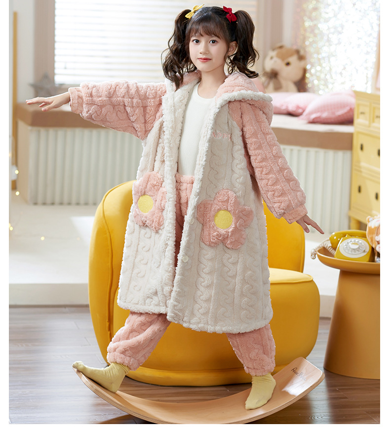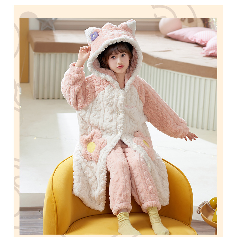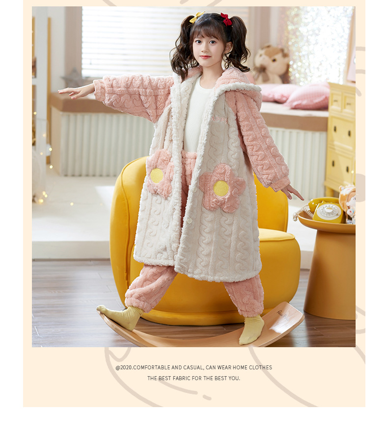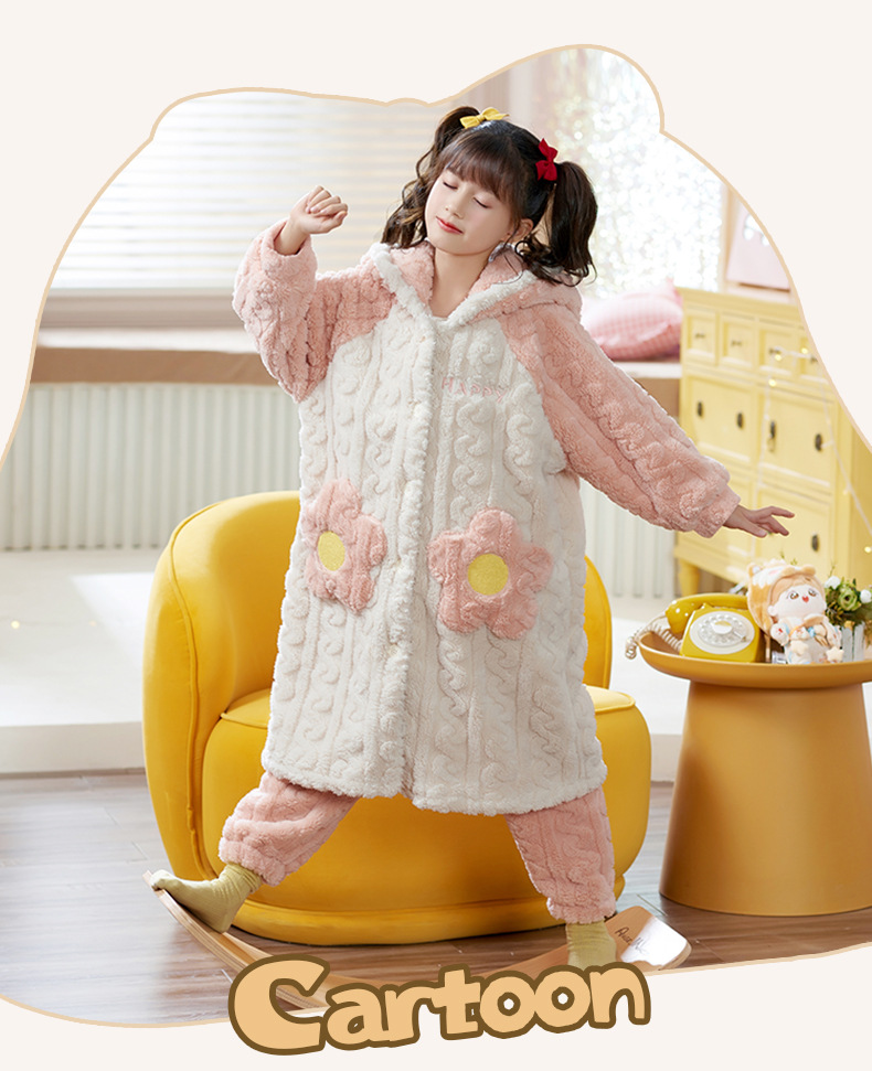 어린이 잠옷 가을과 겨울 여아 플란넬 두꺼운 따뜻한 세트 여아 산호 양털 잠옷 큰 어린이 가정 의류스토어 가기