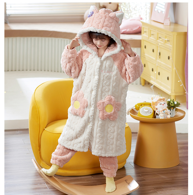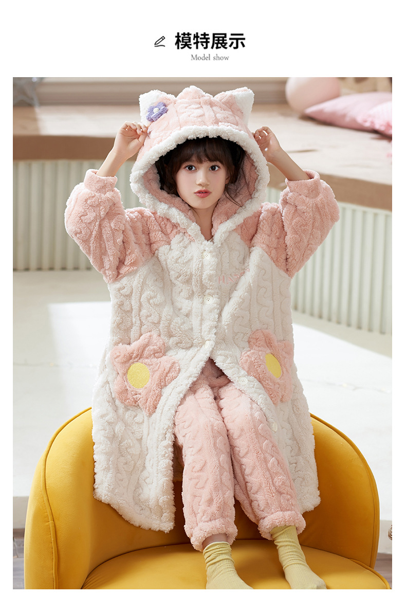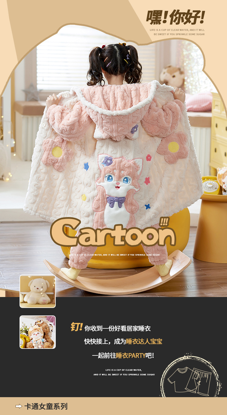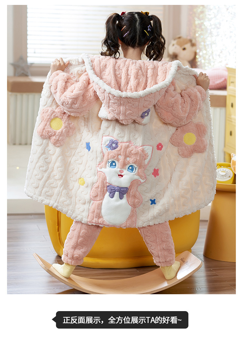 어린이 잠옷 가을과 겨울 여아 플란넬 두꺼운 따뜻한 세트 여아 산호 양털 잠옷 큰 어린이 가정 의류스토어 가기