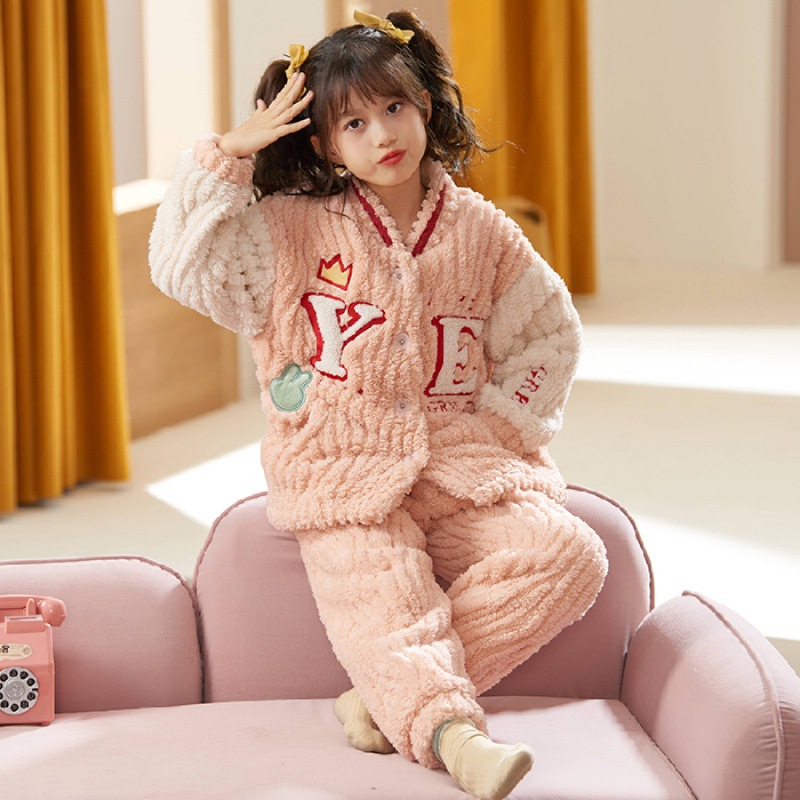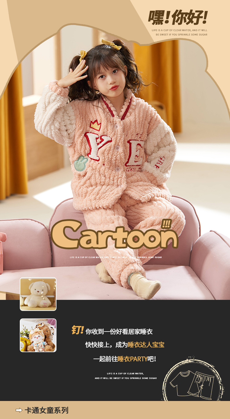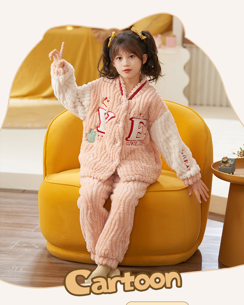 어린이 잠옷 소녀 가을과 겨울 소녀 야구 플란넬 어린이 만화 가정복을위한 두꺼운 산호 양털 세트스토어 가기