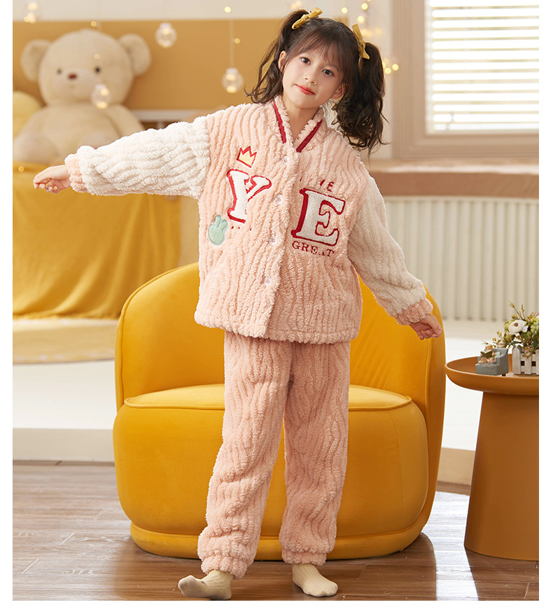 어린이 잠옷 소녀 가을과 겨울 소녀 야구 플란넬 어린이 만화 가정복을위한 두꺼운 산호 양털 세트