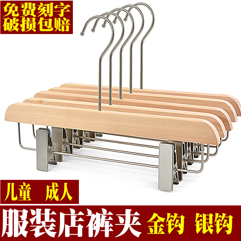 페인트 없음 단단한 나무 바지 랙 도매 성인 의류 매장 특수 나무 바지 클립 골드 후크 아동 의류 매장 나무 바지 지원