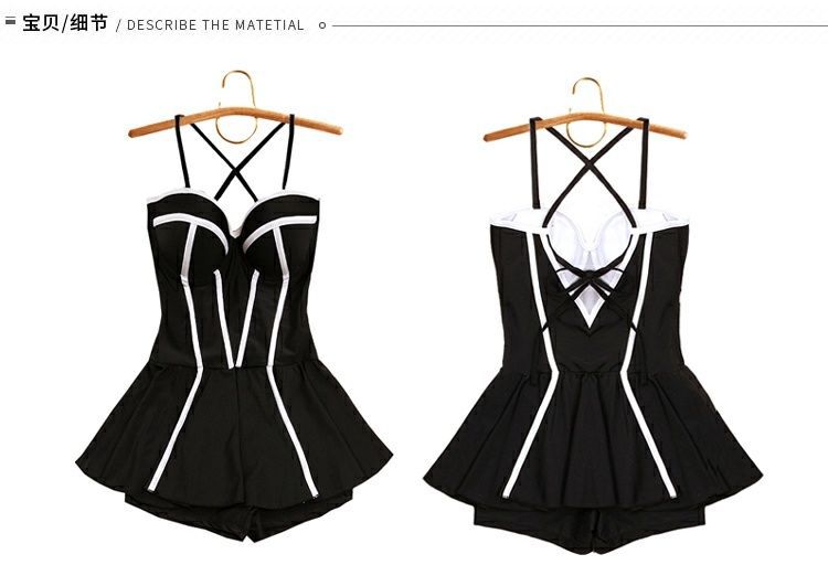 스커트형 원피스 수영복, 배를 가려주는 보수적인 디자인, 온천용, 컬러 블록 프린트, 푸쉬업, 홀터넥, 인스타그램 스타일 수영복, 비키니 원피스스토어 가기