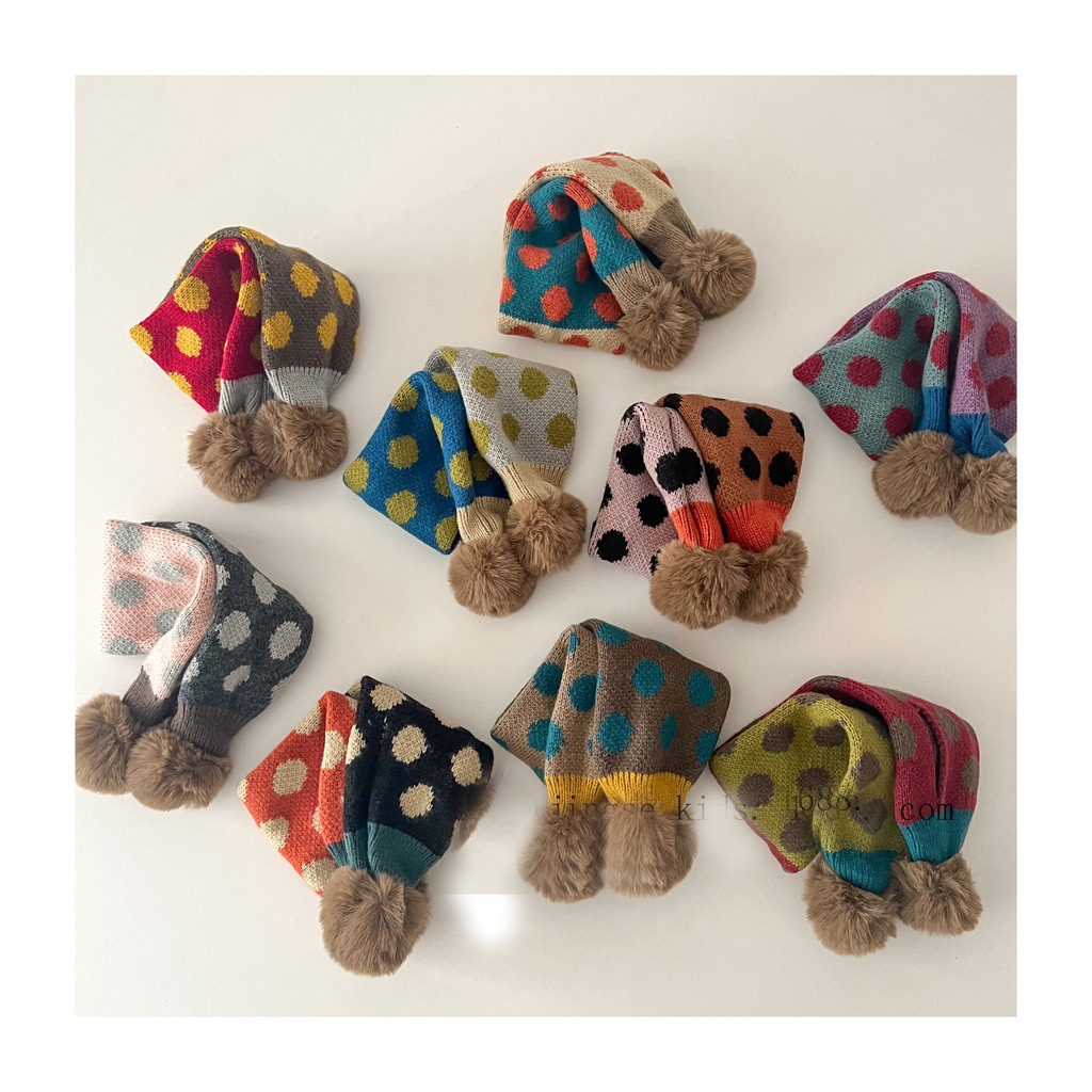 가을과 겨울에 남성과 여성을 위한 작은 신선한 어린이 패션 폴카 도트 컬러 블록 크로스 스카프, 다용도 따뜻한 모직 스카프스토어 가기