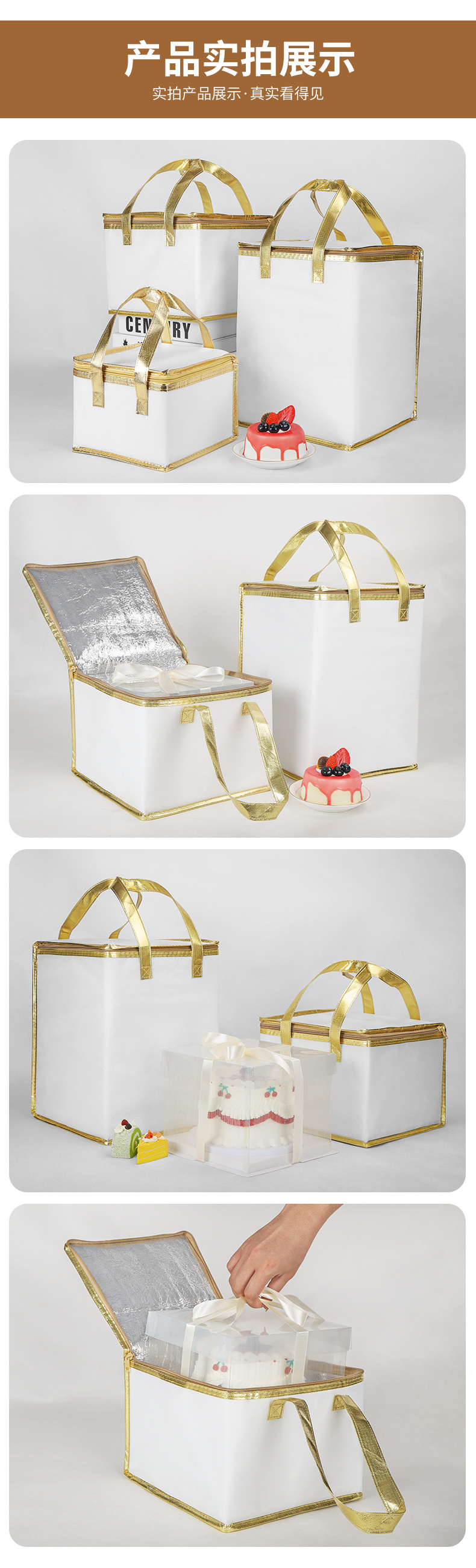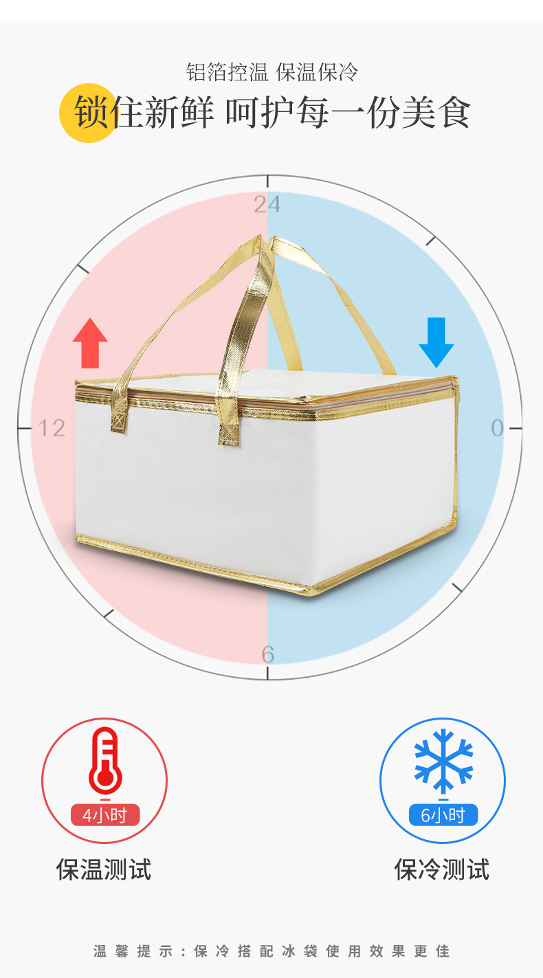 지퍼형 보온 테이크아웃 가방, 알루미늄 호일 냉장/보냉 가방, 휴대용 가방, 케이크 보온 가방, 아이스팩, 휴대용 접이식 가방