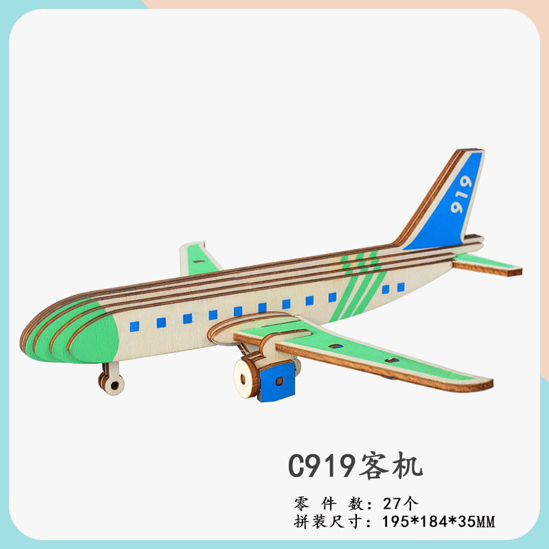 항공기 모델 여객기 시뮬레이션 나무 장난감 어린이 수제 퍼즐 조립 3D 입체 직소 퍼즐 도매 마구간스토어 가기