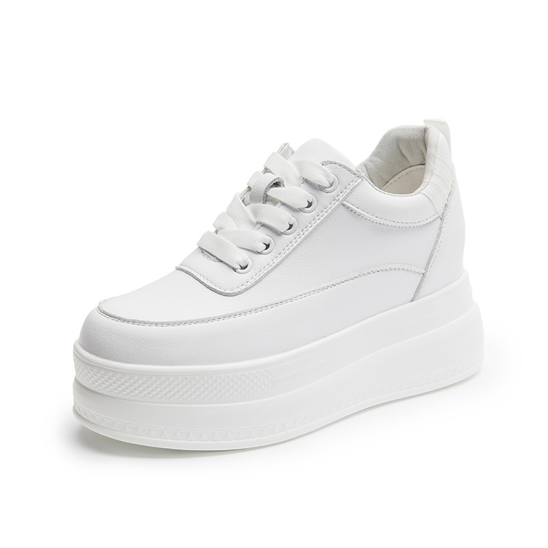 봄과 여름 2023 새로운 스타일 머핀 두꺼운 바닥 증가 가죽 여성 신발 메쉬 흰색 신발 모든 매치 캐주얼 운동화스토어 가기