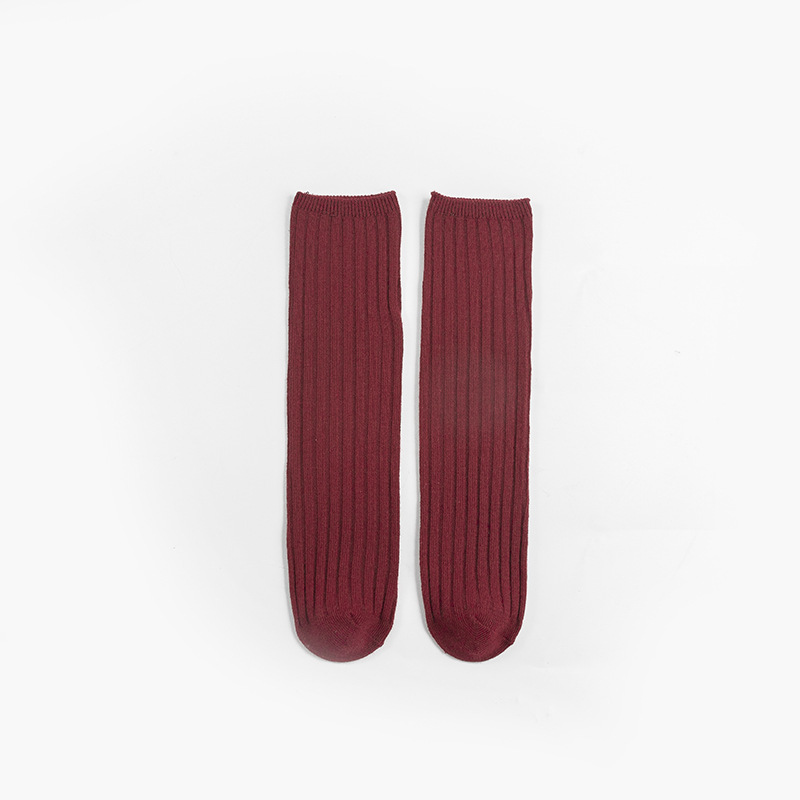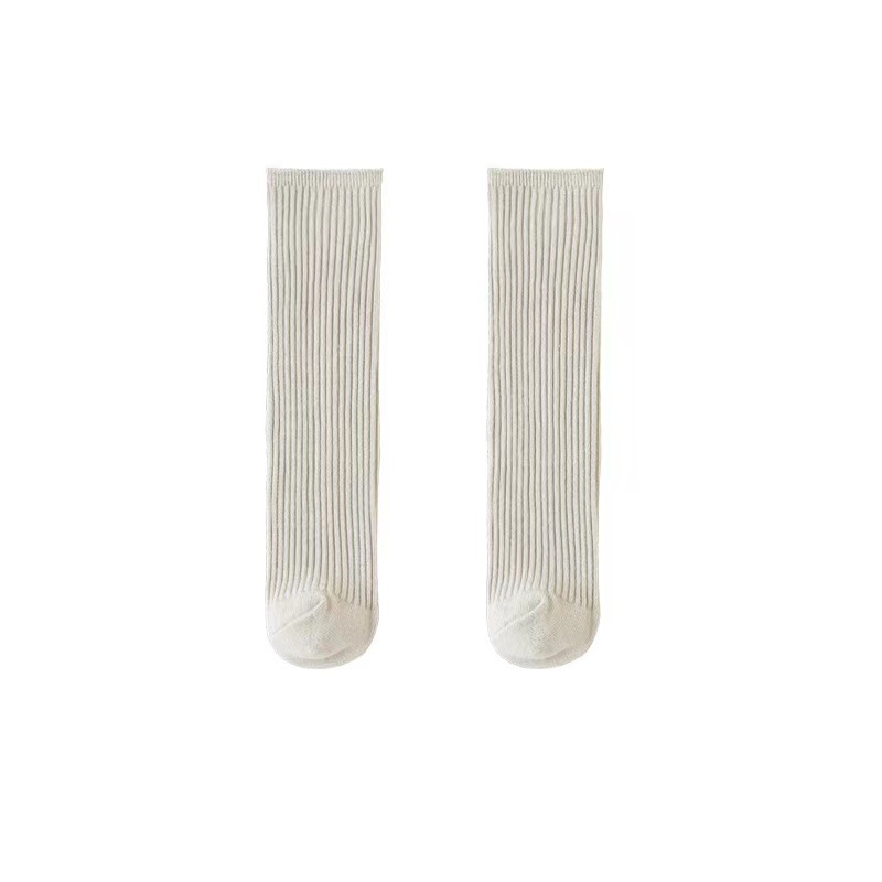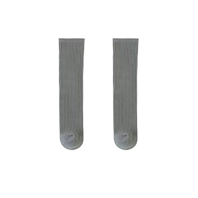 가을과 겨울 새로운 어린이 양말 소년과 소녀를위한 가을 단색 이중 바늘 어린이 중간 튜브 양말 발 뒤꿈치가없는 아기 면 양말