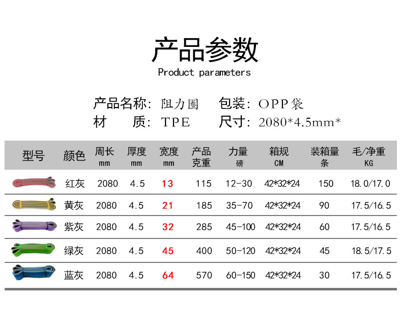• 블루 그레이 2080*4.5*64 (저항값이 높아 스트레칭 훈련에는 적합하지 않으며, 턱걸이 훈련에 적합)