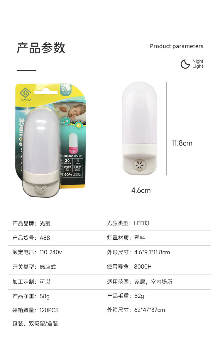 맞춤형 감광 LED 야간 조명 처리 대외 무역 유도 야간 조명 침실 플러그인 유럽 규칙 영국 규칙 벽 램프 침대 옆 램프스토어 가기