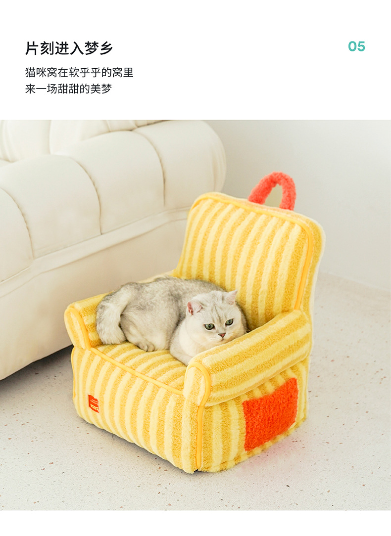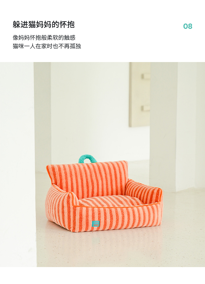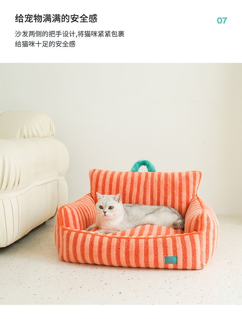 • 줄무늬 부드러운 벨벳 애완동물 침대-오렌지 (단추 없는 기본 모델, 무료 배송)