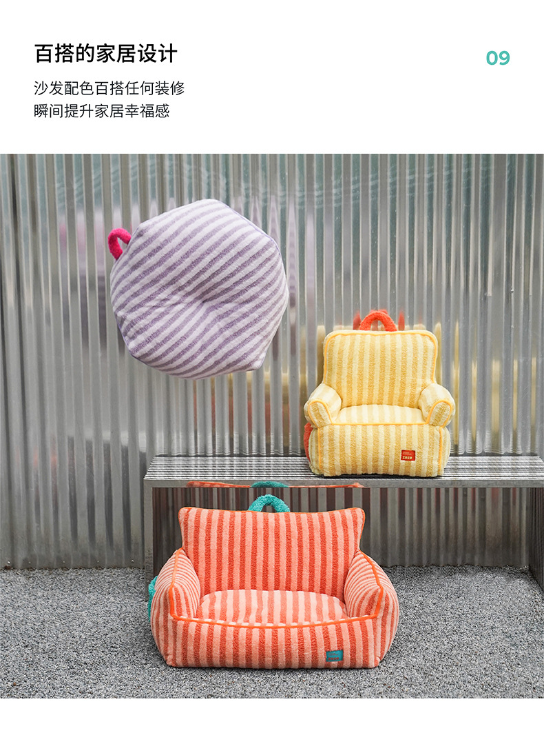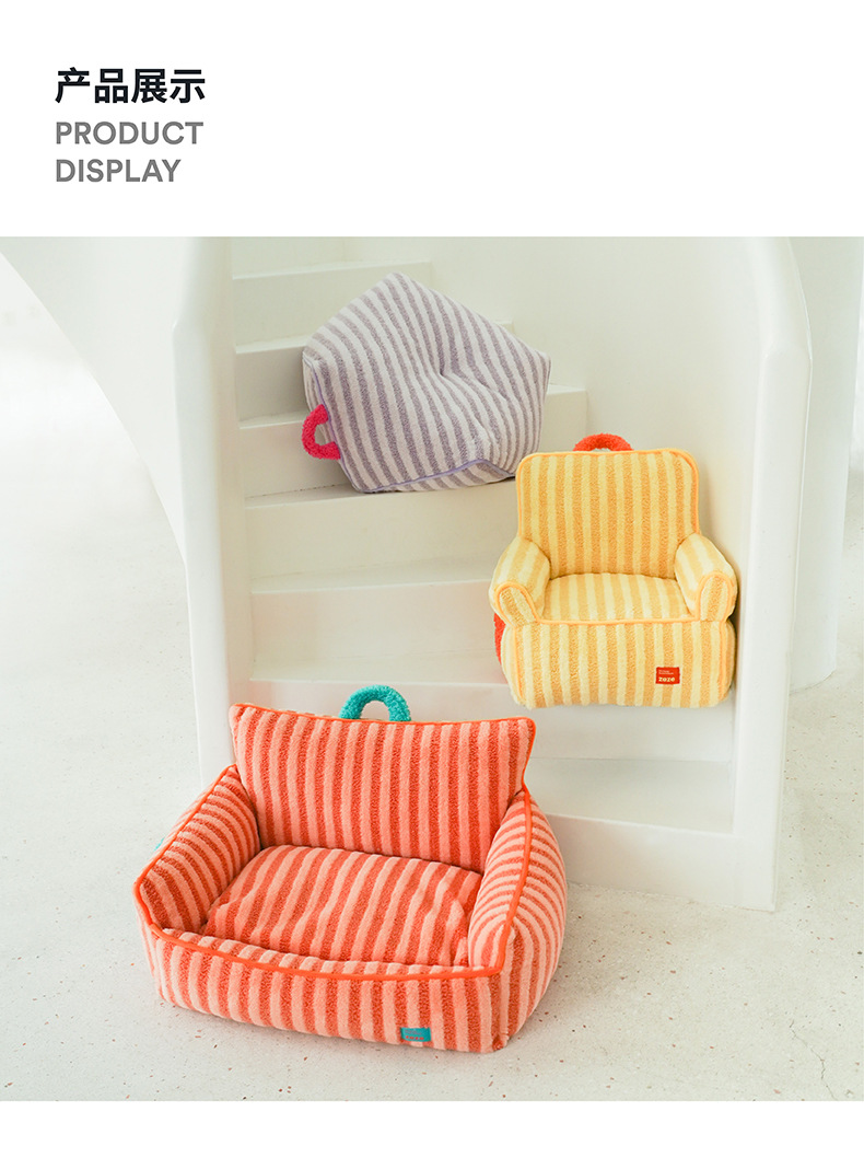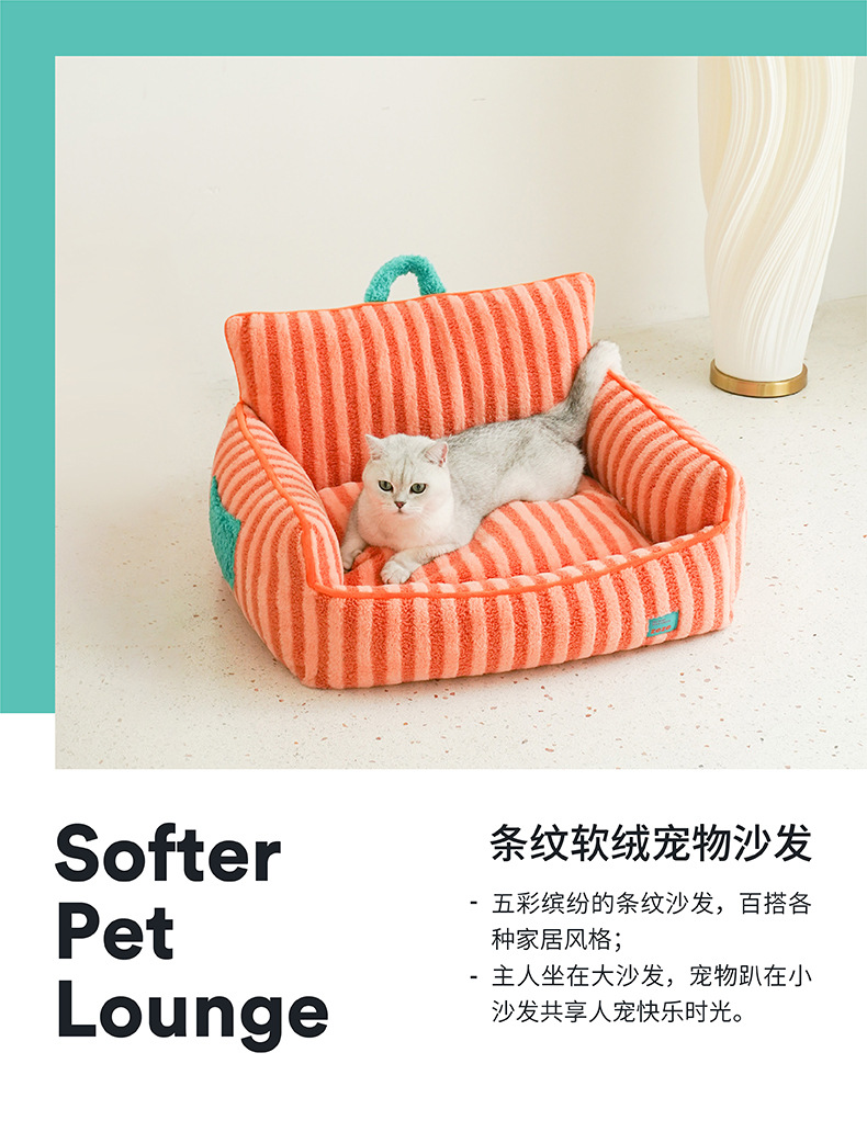 • 스트라이프 소프트 벨벳 애완동물 소파 침대 퍼플(무료 배송)(새 스타일)