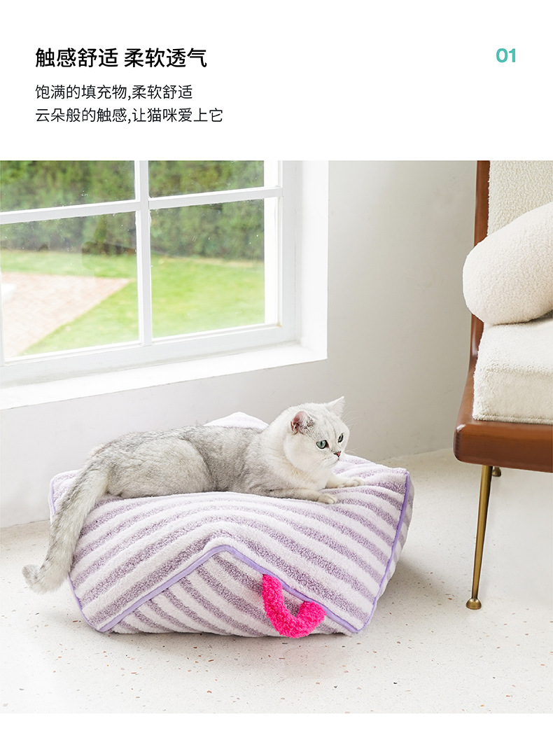 Zeze 스트라이프 애완 동물 침대 따뜻한 고양이 침대 사계절 범용 이동식 및 빨 귀여운 애완 동물 소파 고양이 둥지 부드러운 벨벳 매트스토어 가기