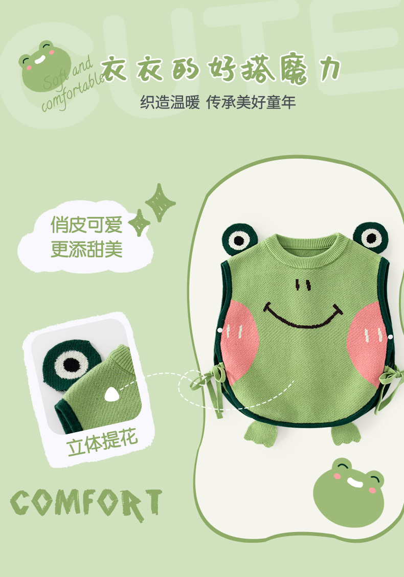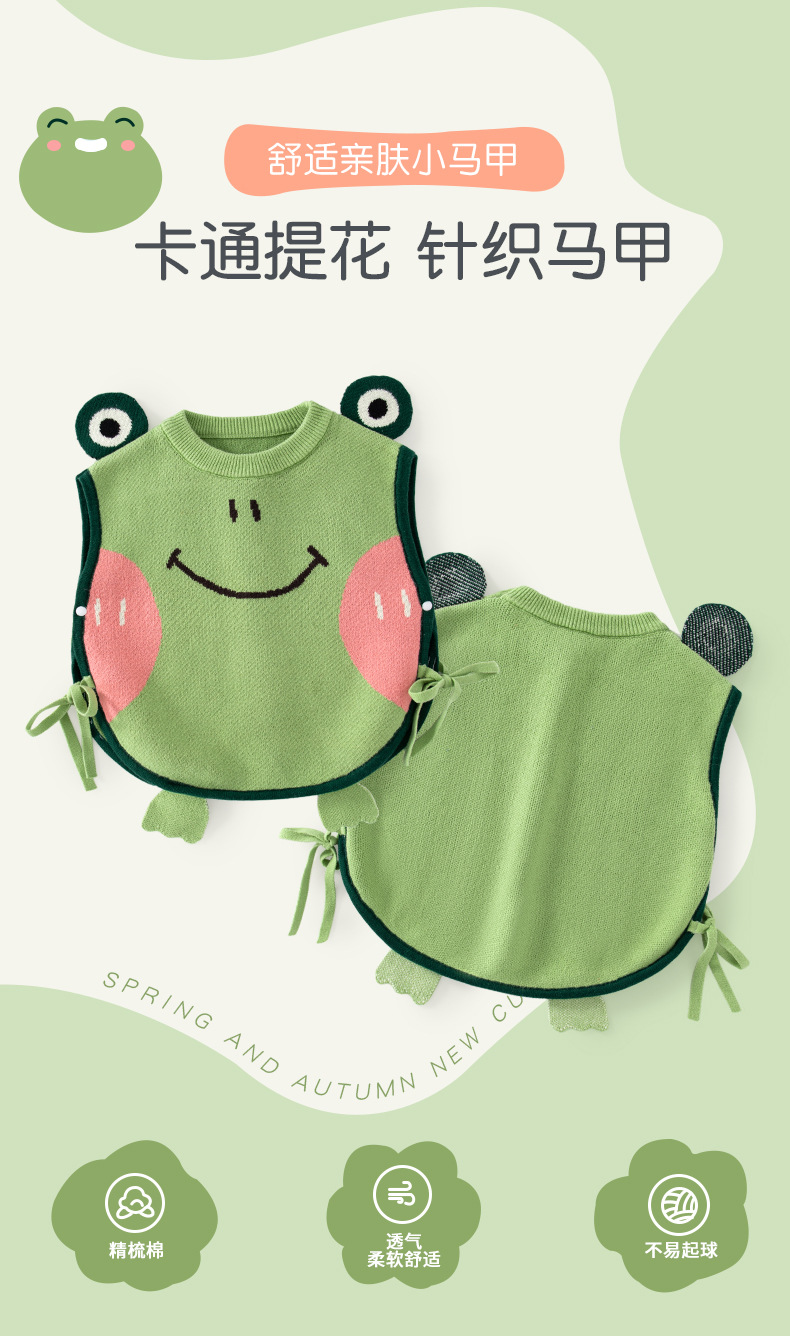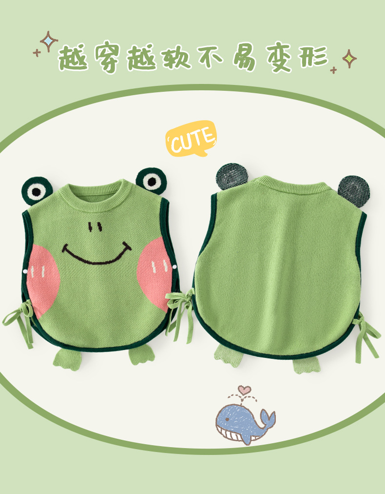 귀여운 작은 개구리 아기 조끼 클래스 A 순수 코튼 귀여운 니트 어린이 조끼 스웨터 가을, 겨울 아기 조끼