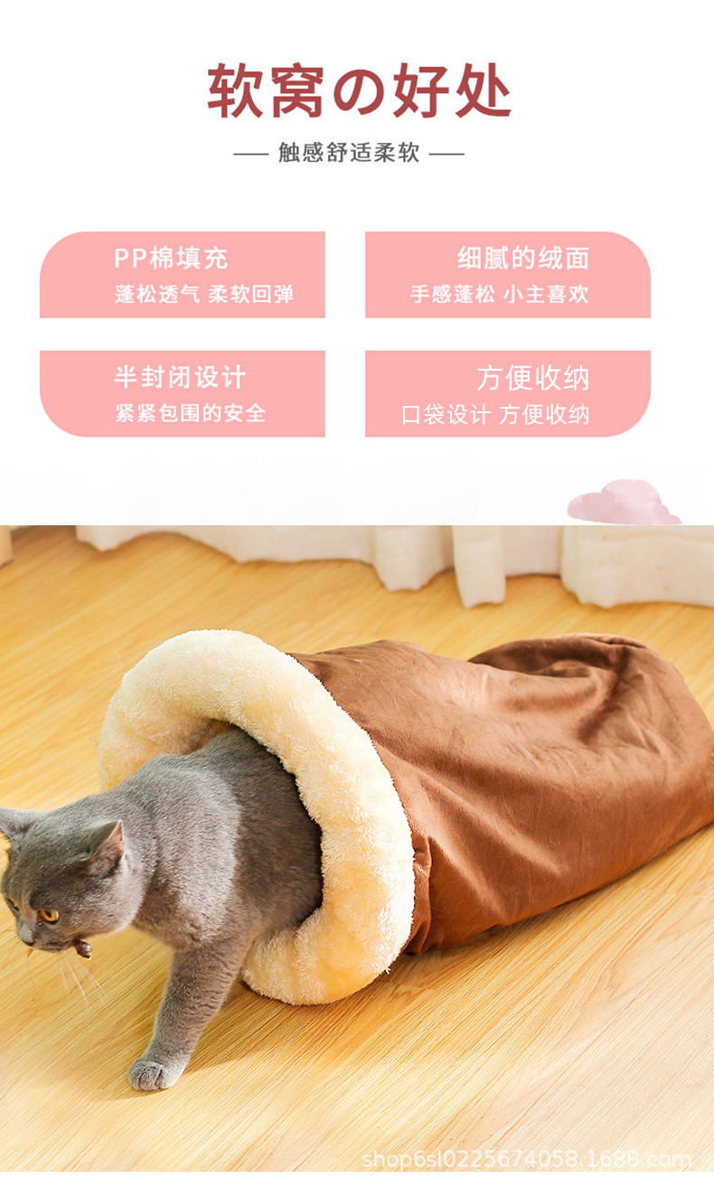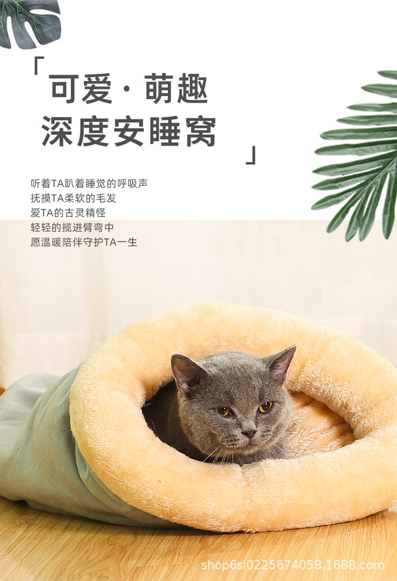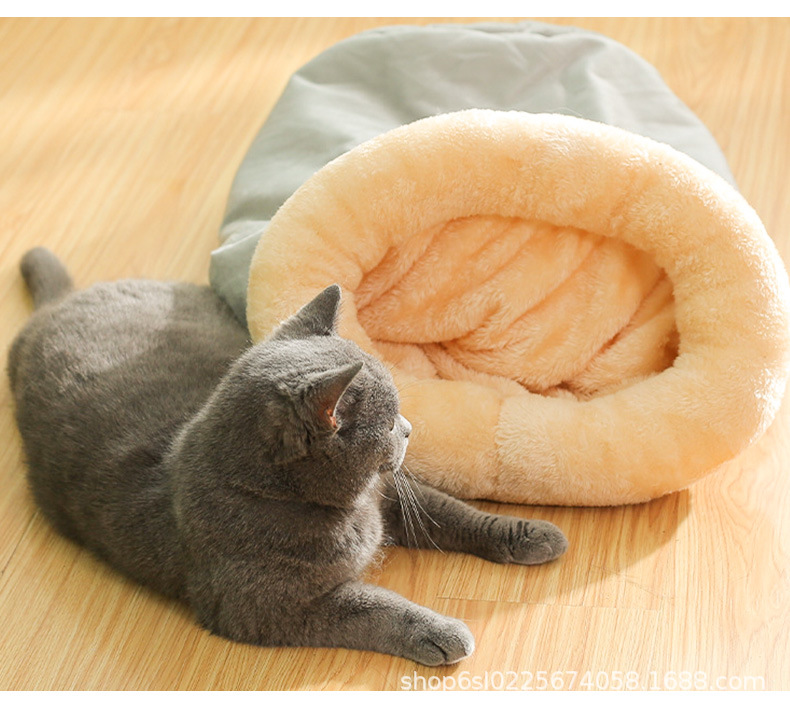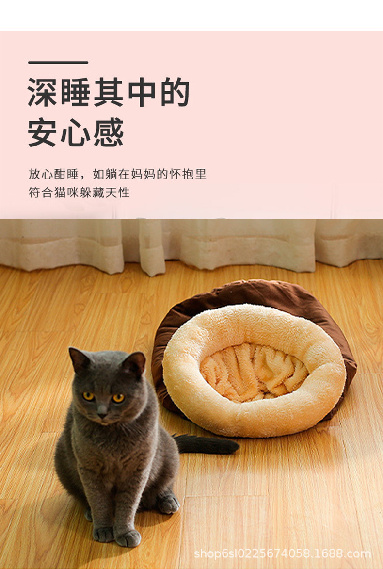 가을과 겨울 애완 동물 고양이 침낭 반 폐쇄 고양이 둥지 따뜻한 중소 개 사육장 고양이 수면 침대 분리 및 빨 애완 동물 둥지