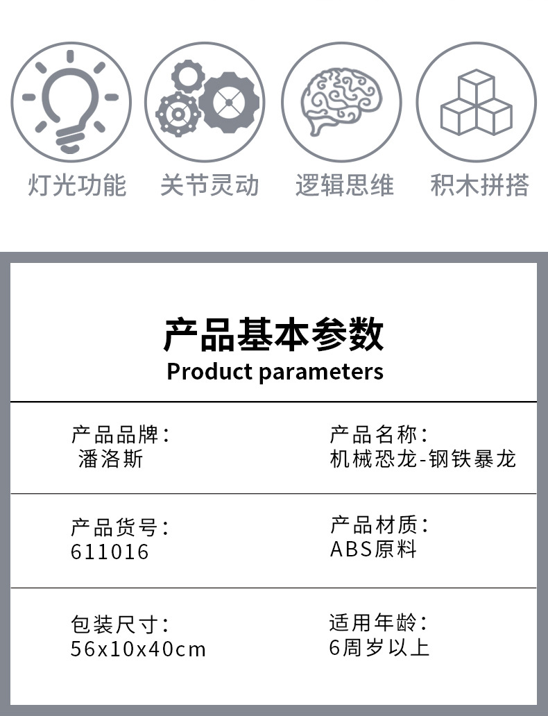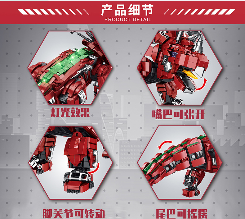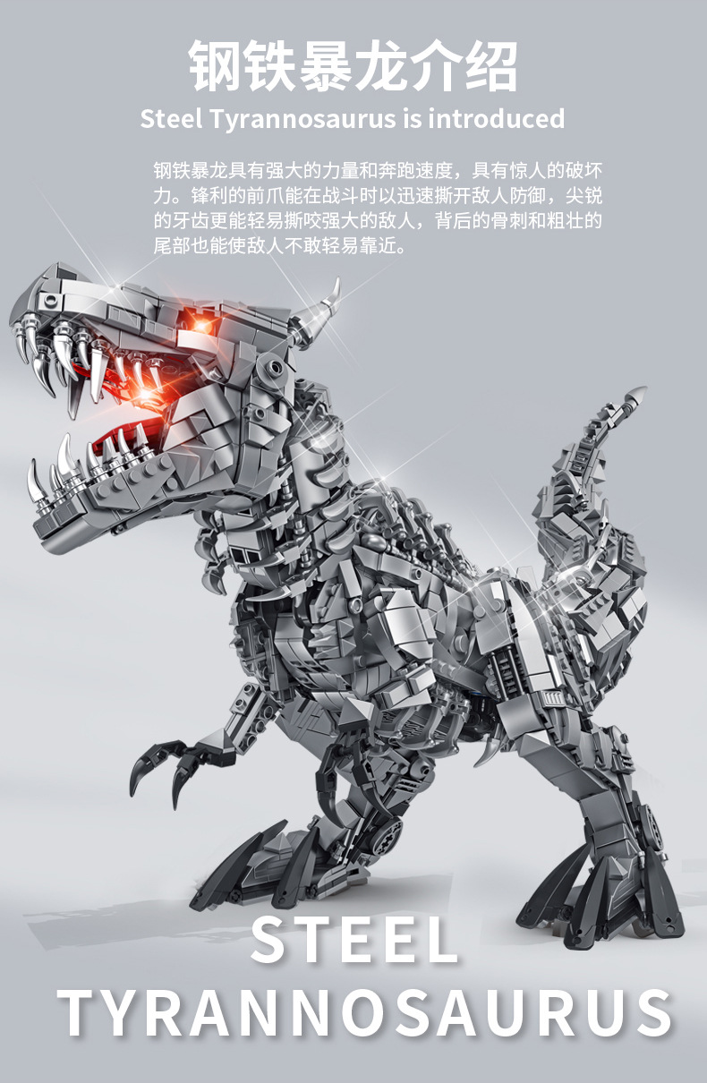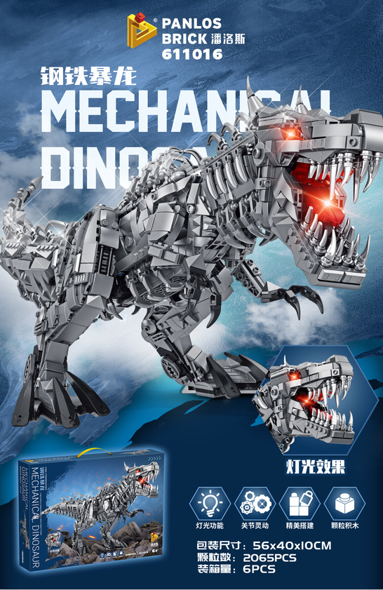 판로스 제조업체 도매 조명 기계 공룡 철제 티라노사우루스 611016 조립식 블록 장난감스토어 가기