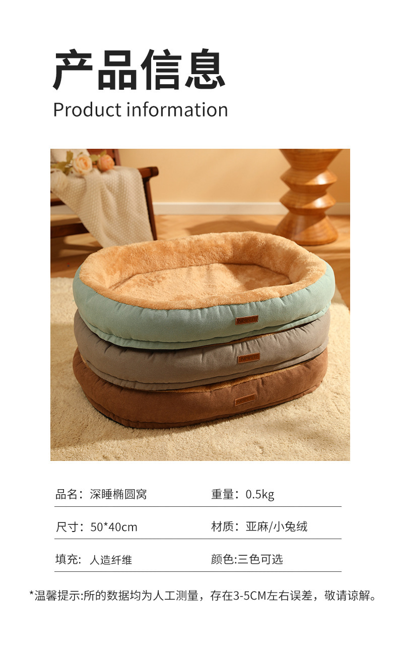 새로운 대외 무역 국경 개 사육장 고급 애완 동물 침대 깊은 수면 따뜻한 애완 동물 사육장 타원형 스테레오 활주로 개집