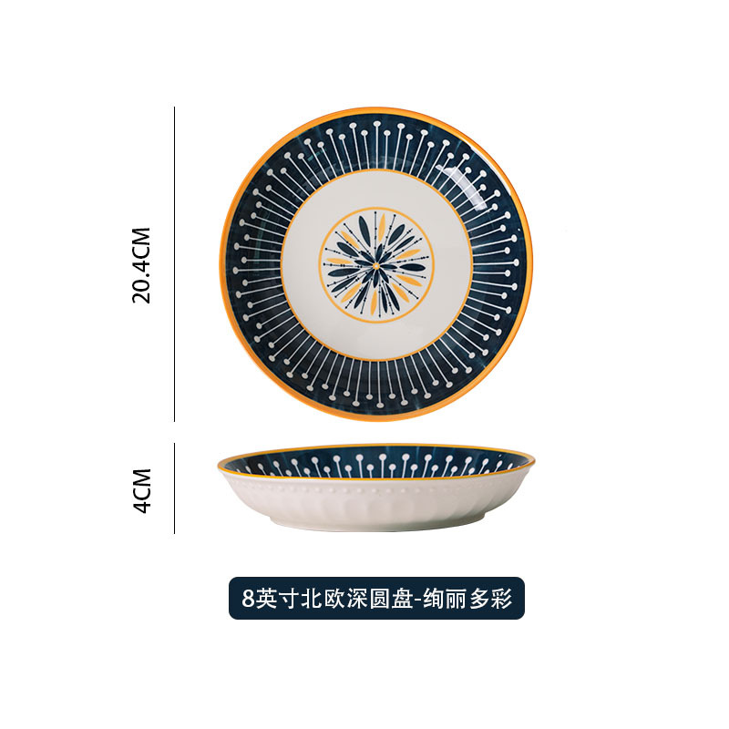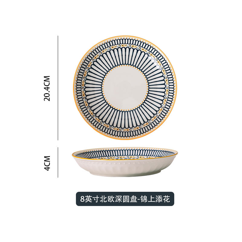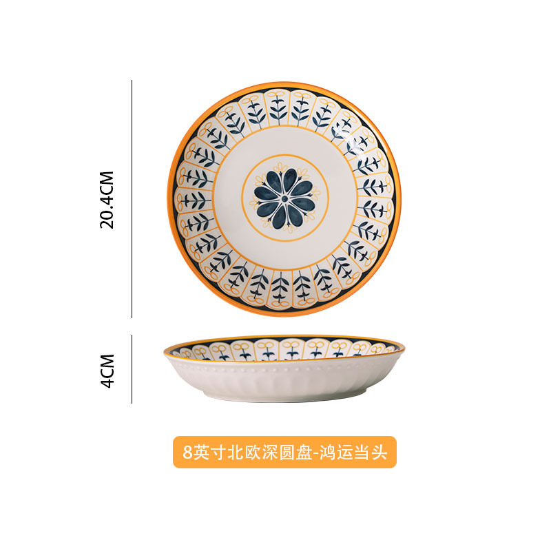 세라믹 플레이트 8 인치 라운드 플레이트 북유럽 크리에이티브 빈티지 세라믹 찐 계란 접시 가정용 수프 접시 밥 접시 깊은 접시 접시 접시스토어 가기