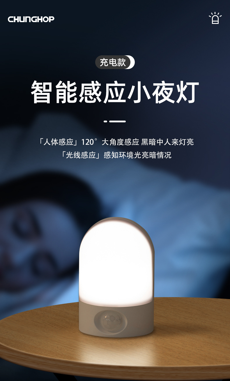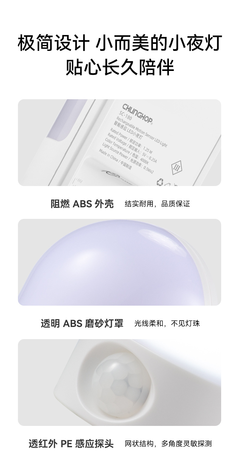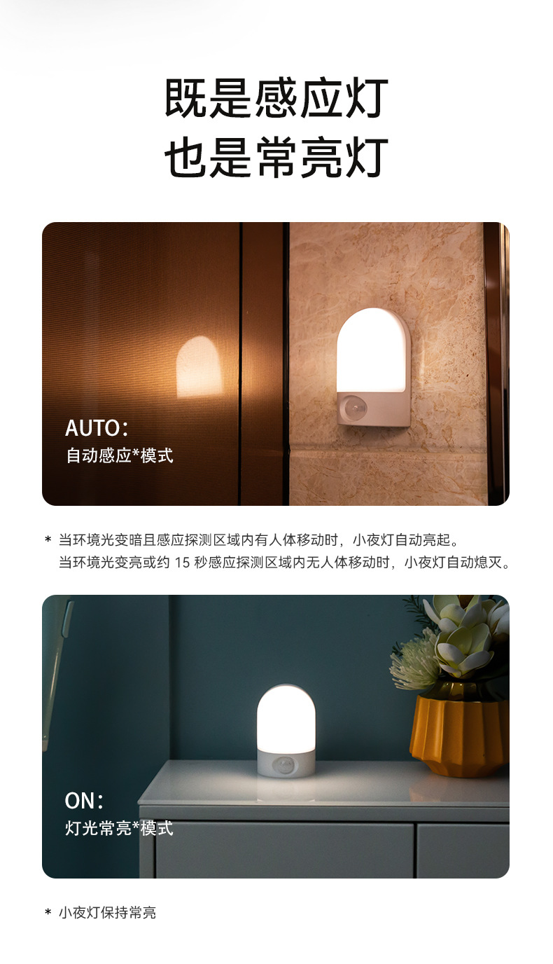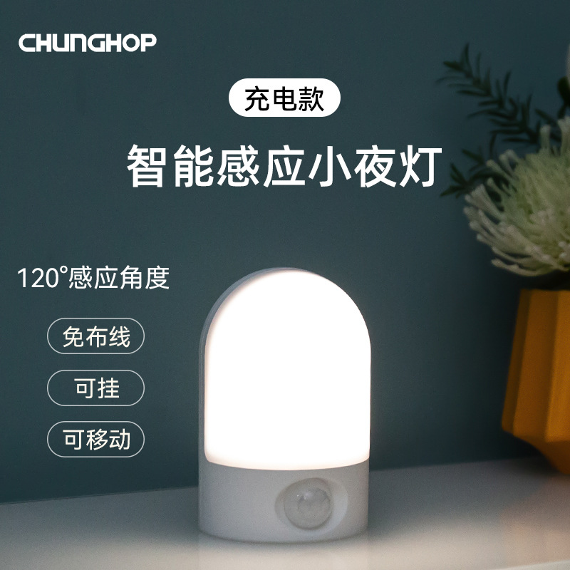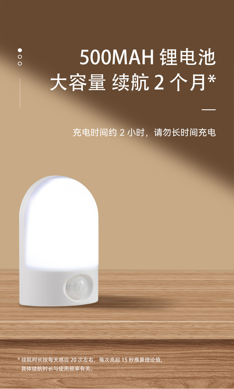 LED 소형 야간등, 벽걸이형 램프, 충전식 이동식 침대 옆 인체감지등, 따뜻한 백색광 야간등