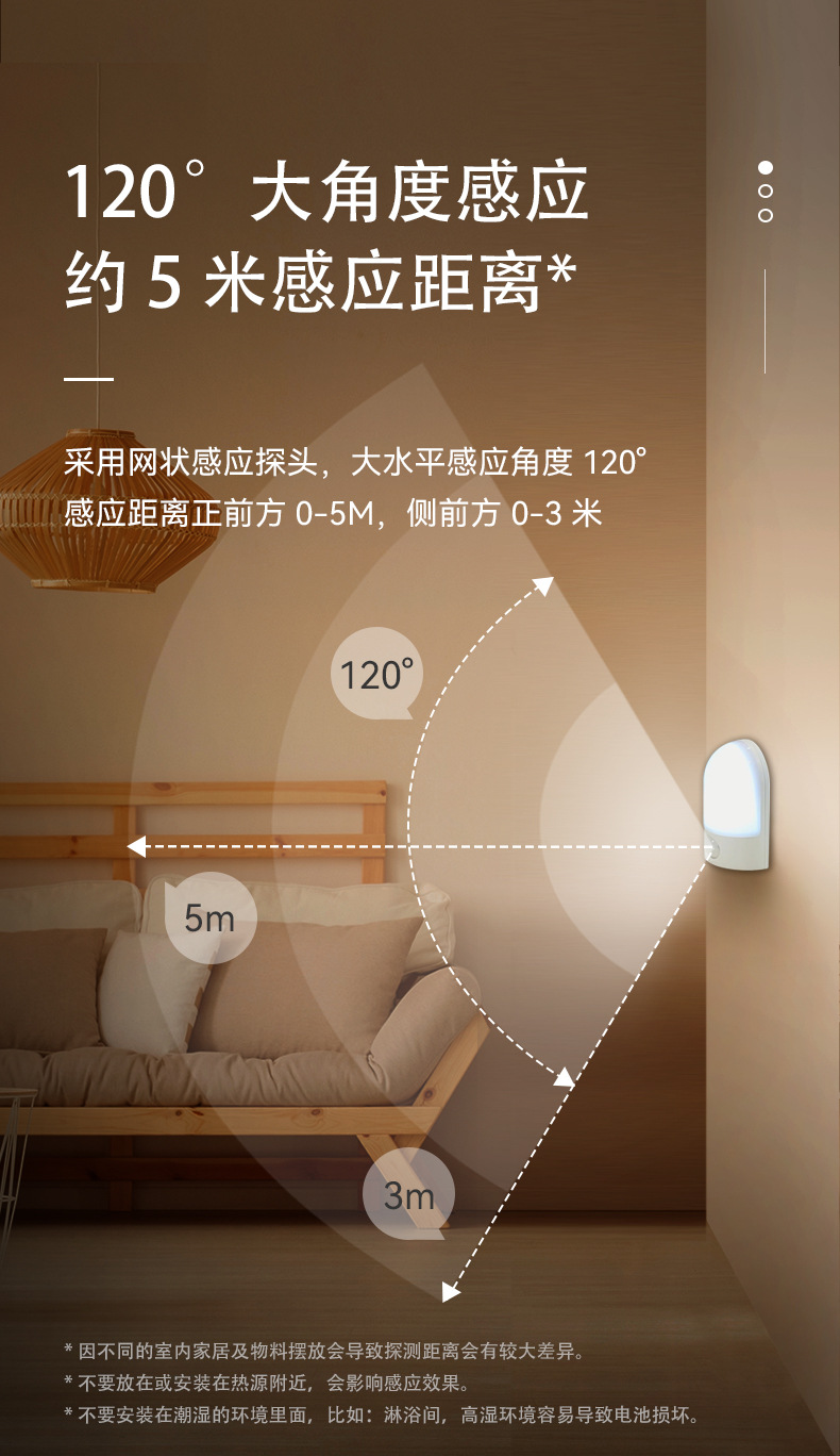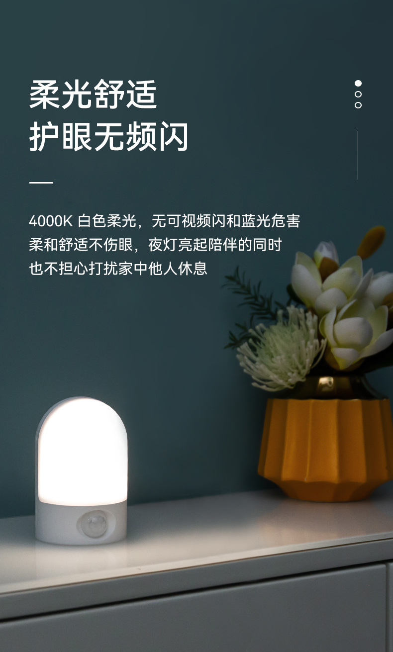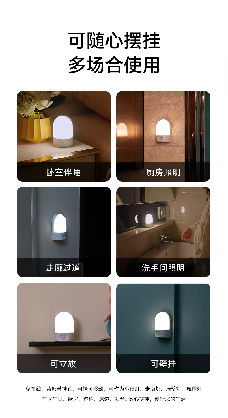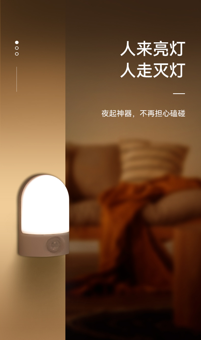 LED 소형 야간등, 벽걸이형 램프, 충전식 이동식 침대 옆 인체감지등, 따뜻한 백색광 야간등스토어 가기