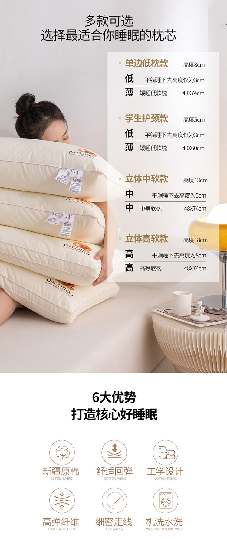 Class A 항균면 100 베개 베개 코어 5 성급 호텔 빨 베개 붕괴없이 수면을 돕는 경추 보호스토어 가기