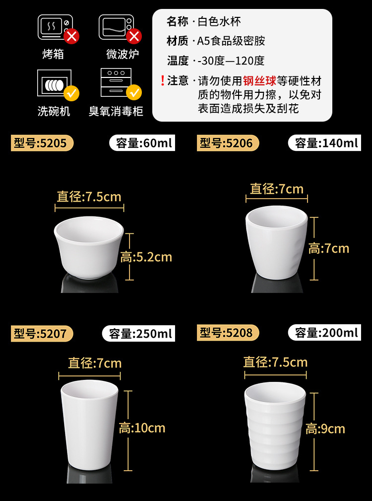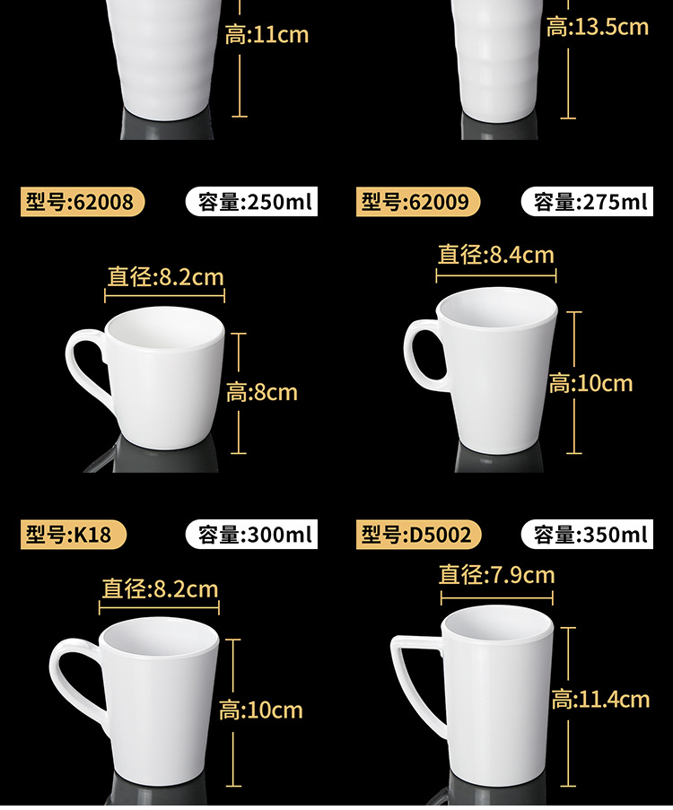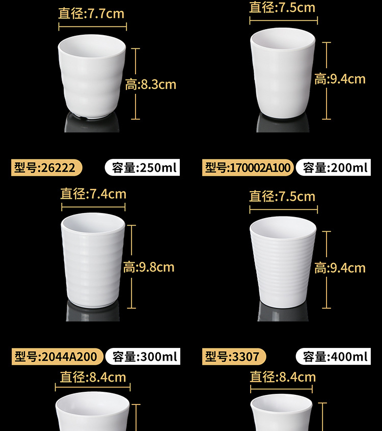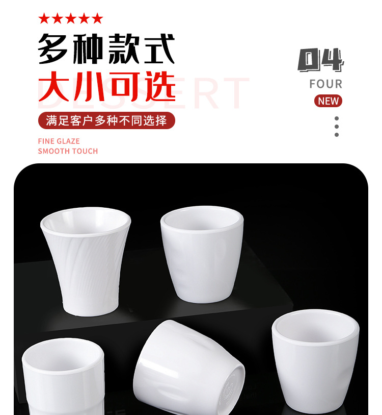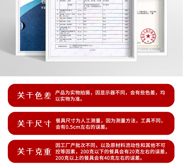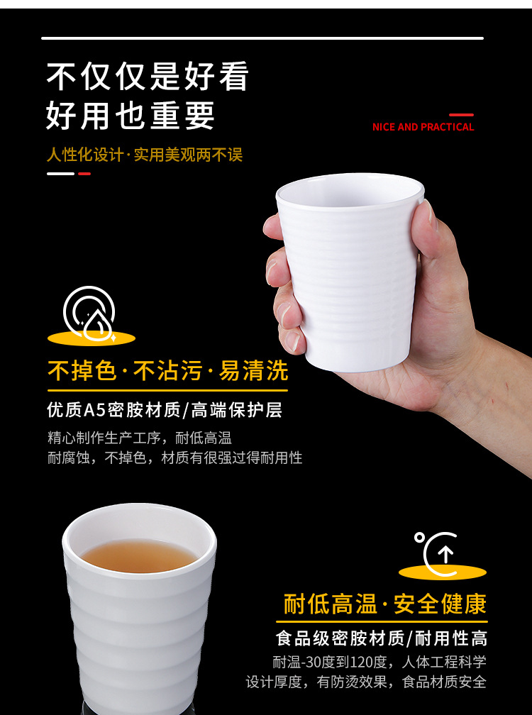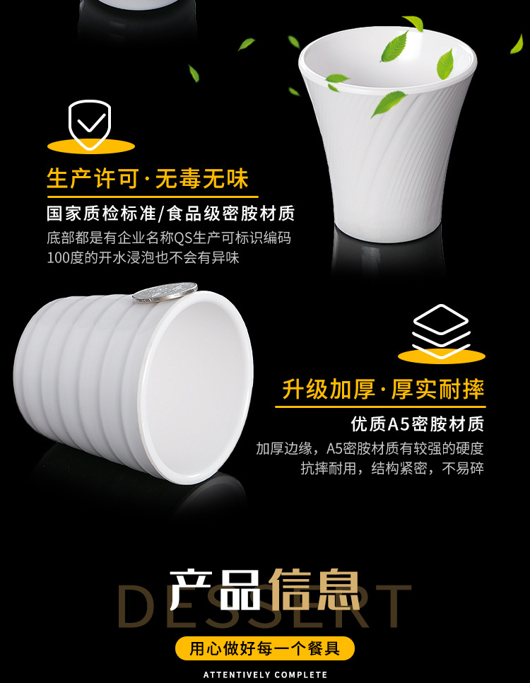 特点:虽有密胺成份,但仍存塑料特性,毒性大,不耐高温,不耐赃,不耐腐蚀,外观粗糙,易变形、变色,光泽度差。