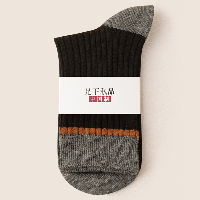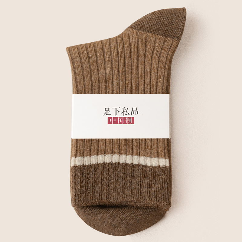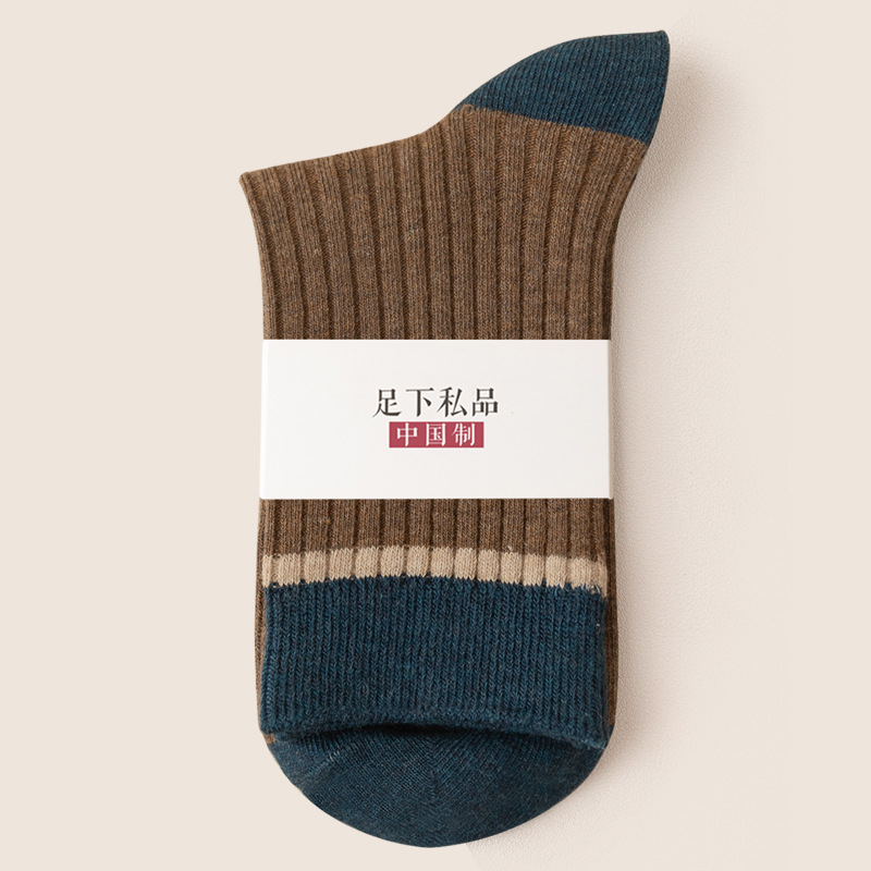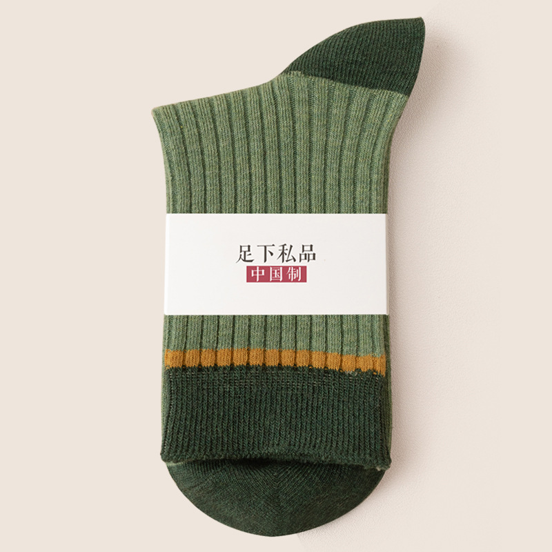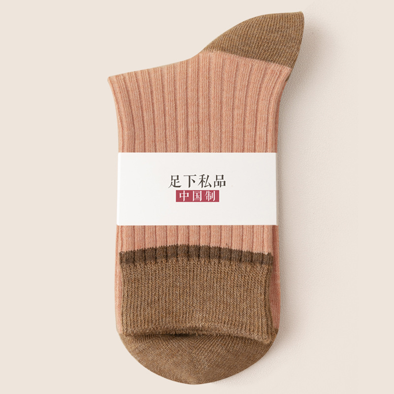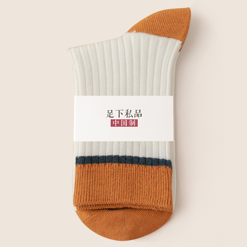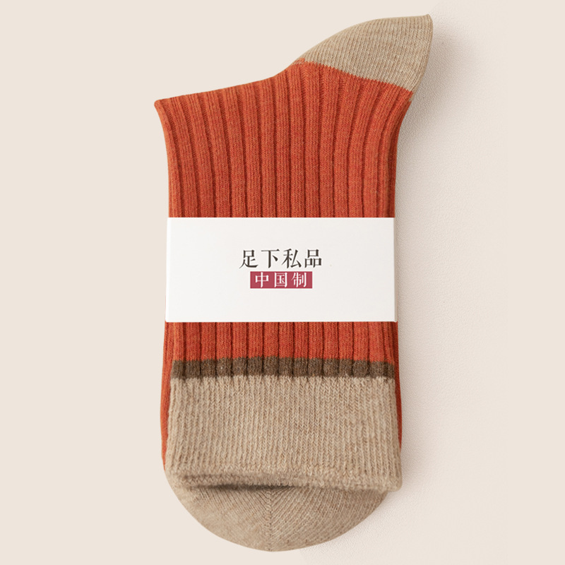 양말 여성용 종아리 양말 이중 바늘 컬러 블록 수직 패턴 양말 내부 및 외부 면 제조업체 도매 종아리 면 양말 가을 겨울 따뜻한 양말