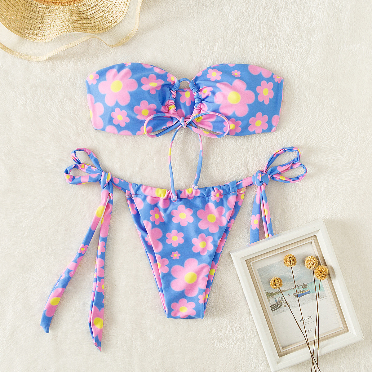 2022 새로운 유럽과 미국 트렌드 크로스 보더 비키니 스플릿 랜덤 꽃 섹시 수영복 비키니 수영복 도매
