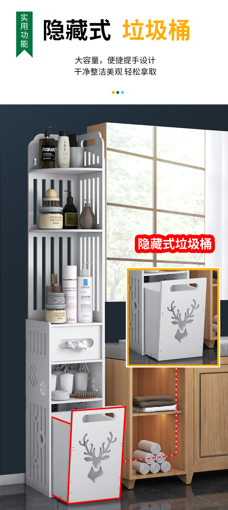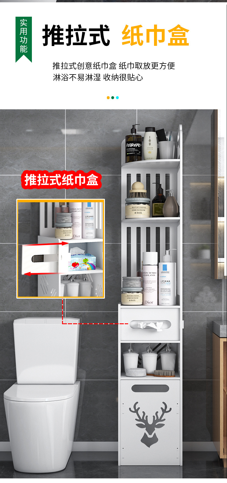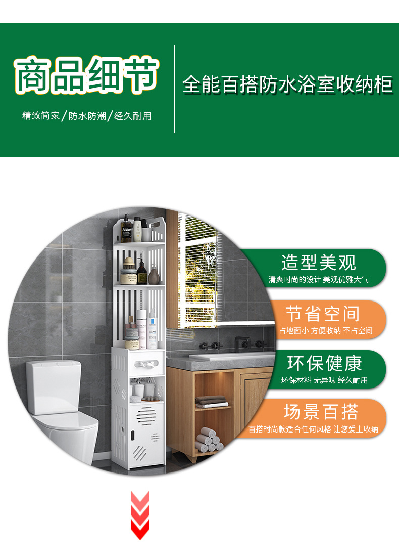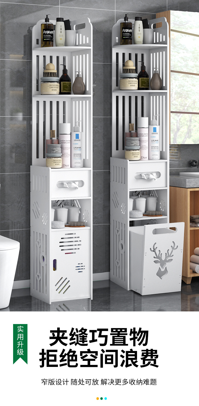 욕실 수납 선반 좁은 틈새 수납장 화장실 바닥 방수 이동식 다층 수납 화장실 변기 옆 캐비닛