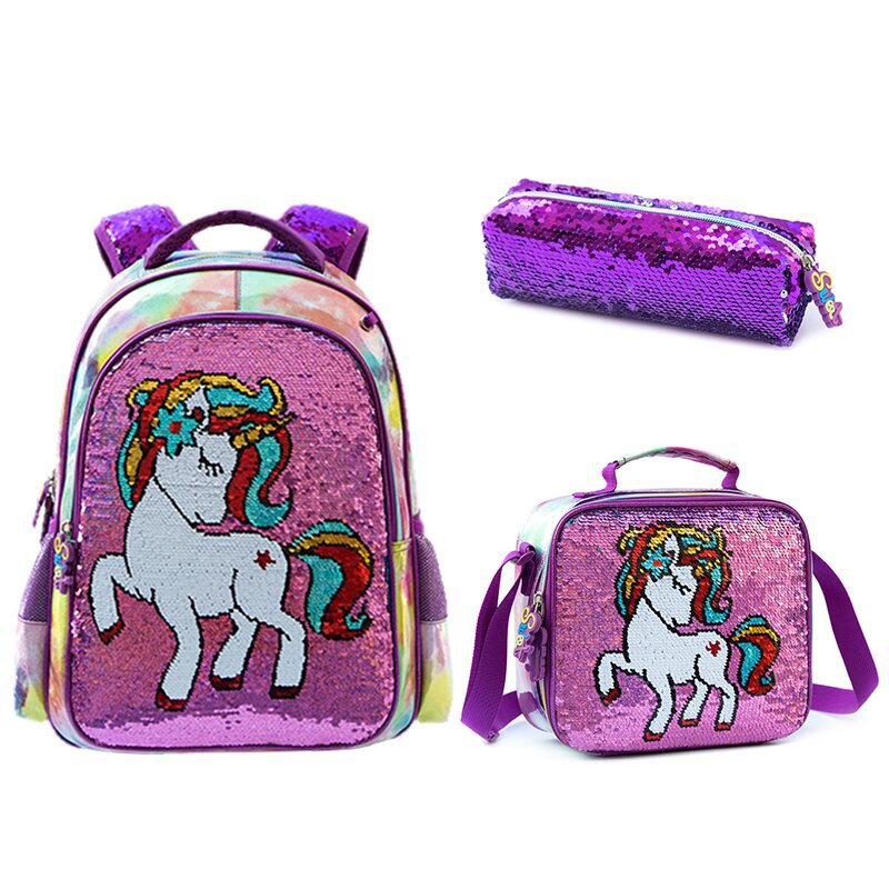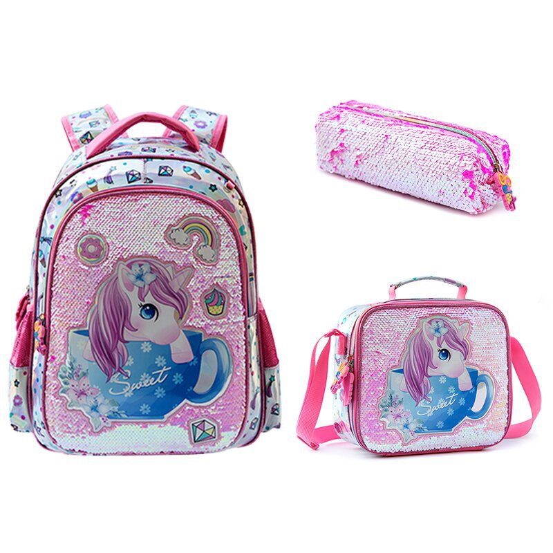 국경을 넘는 새로운 구슬 귀여운 만화 초등학교 소녀 16inch 학교 가방 3 피스 세트 부담을 줄이는 어린이 배낭스토어 가기