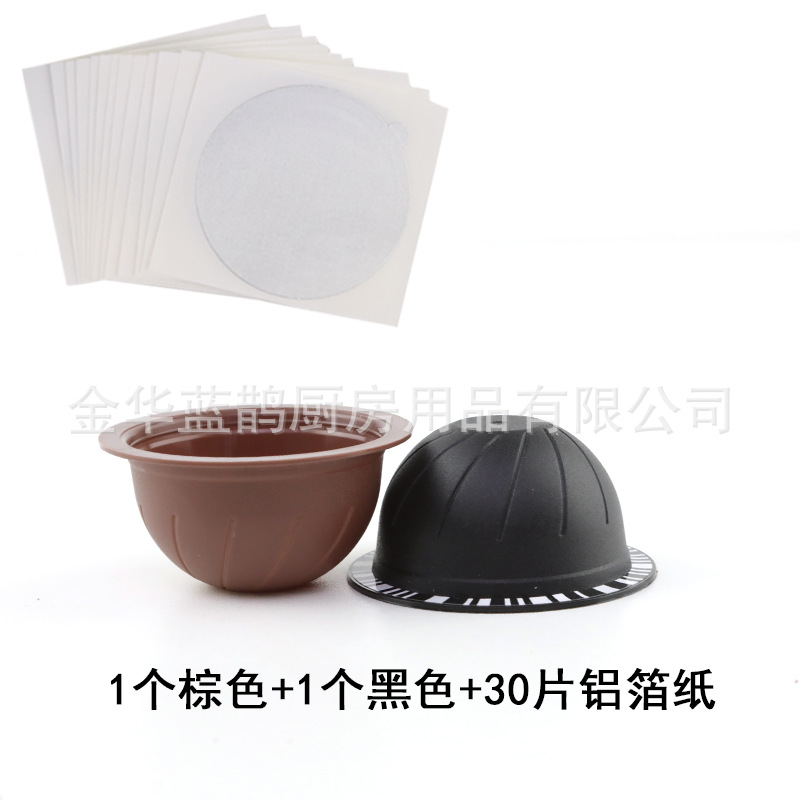 • Vertuo8 조각 세트 2 다크 브라운 컵 + 2 블랙 컵 + 알루미늄 호일 뚜껑 100 개 + 1 우드 파우더 충전 링 + 스푼 브러시