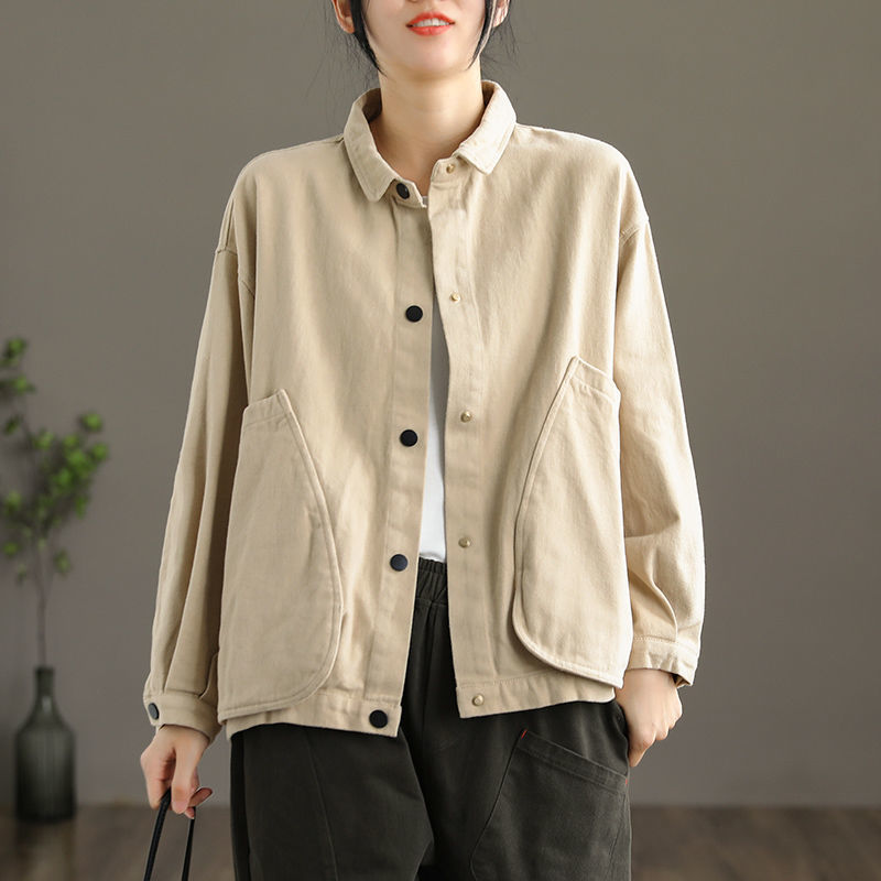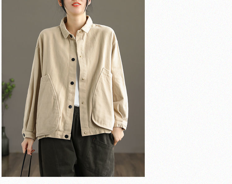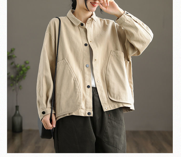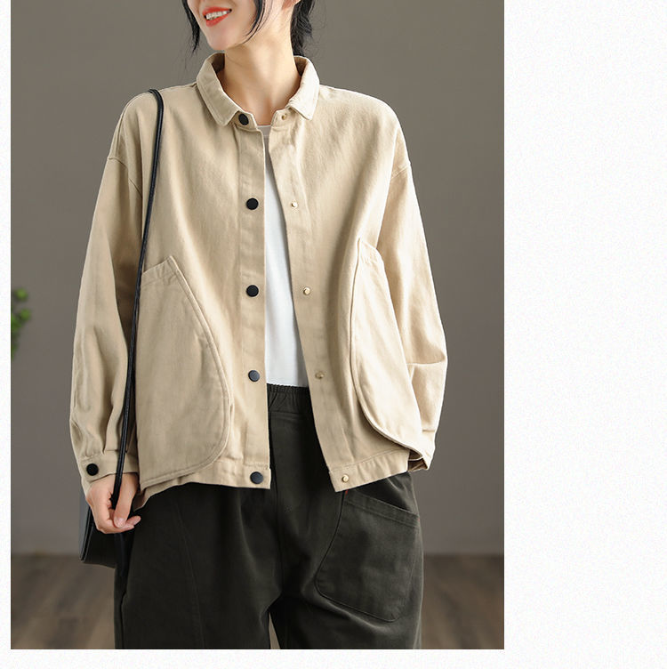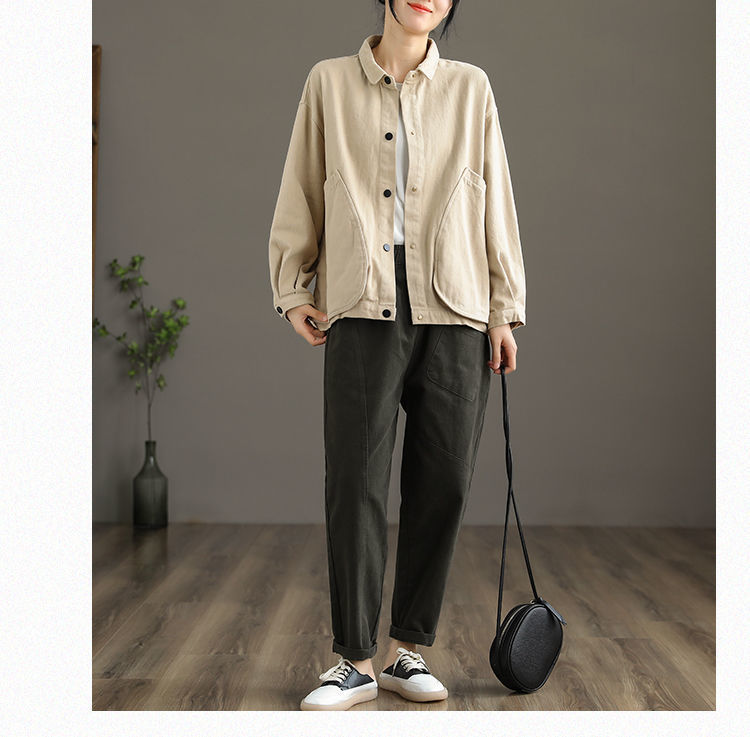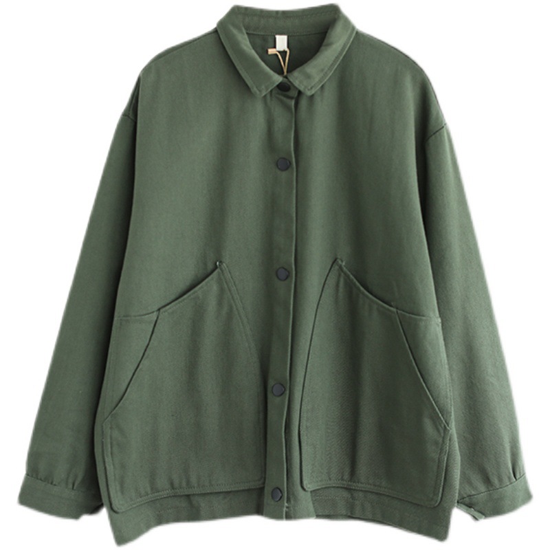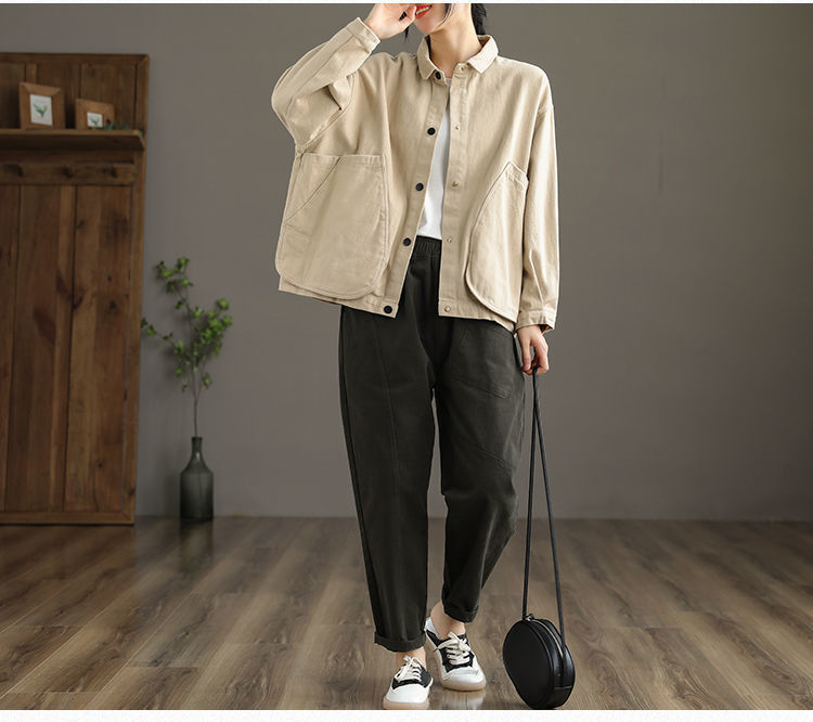 2022 신상품 짧은 재킷 큰 포켓 면 재킷 여자의 한국 스타일 느슨한 랩 긴 소매 캐주얼 재킷 탑스토어 가기